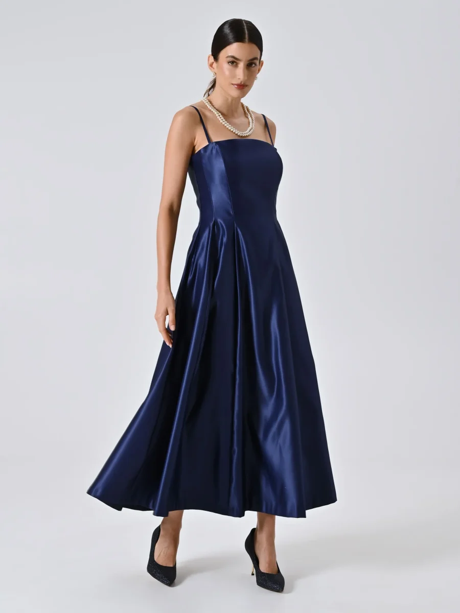 L’Abito a Ruota con Scollo Dritto è una proposta elegante e femminile, pensata per far risplendere ogni look da cerimonia.