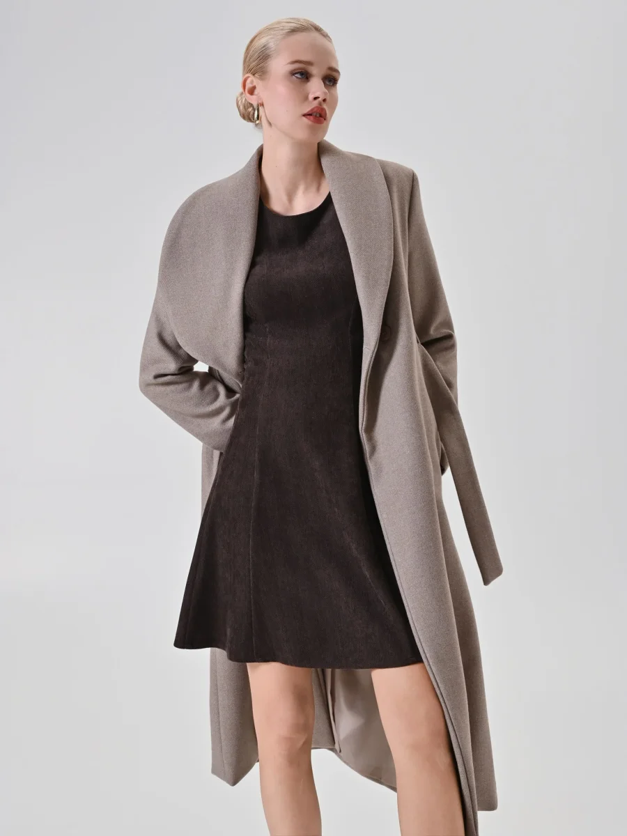 Caldo e avvolgente come i colori dell’autunno, l’abito a ruota in velluto cioccolato è un capo pensato per chi ama uno stile quotidiano curato e femminile. La texture operata del velluto cattura la luce, donando profondità al colore e una piacevole sensazione al tatto, rendendolo perfetto per accompagnare le giornate più fresche.