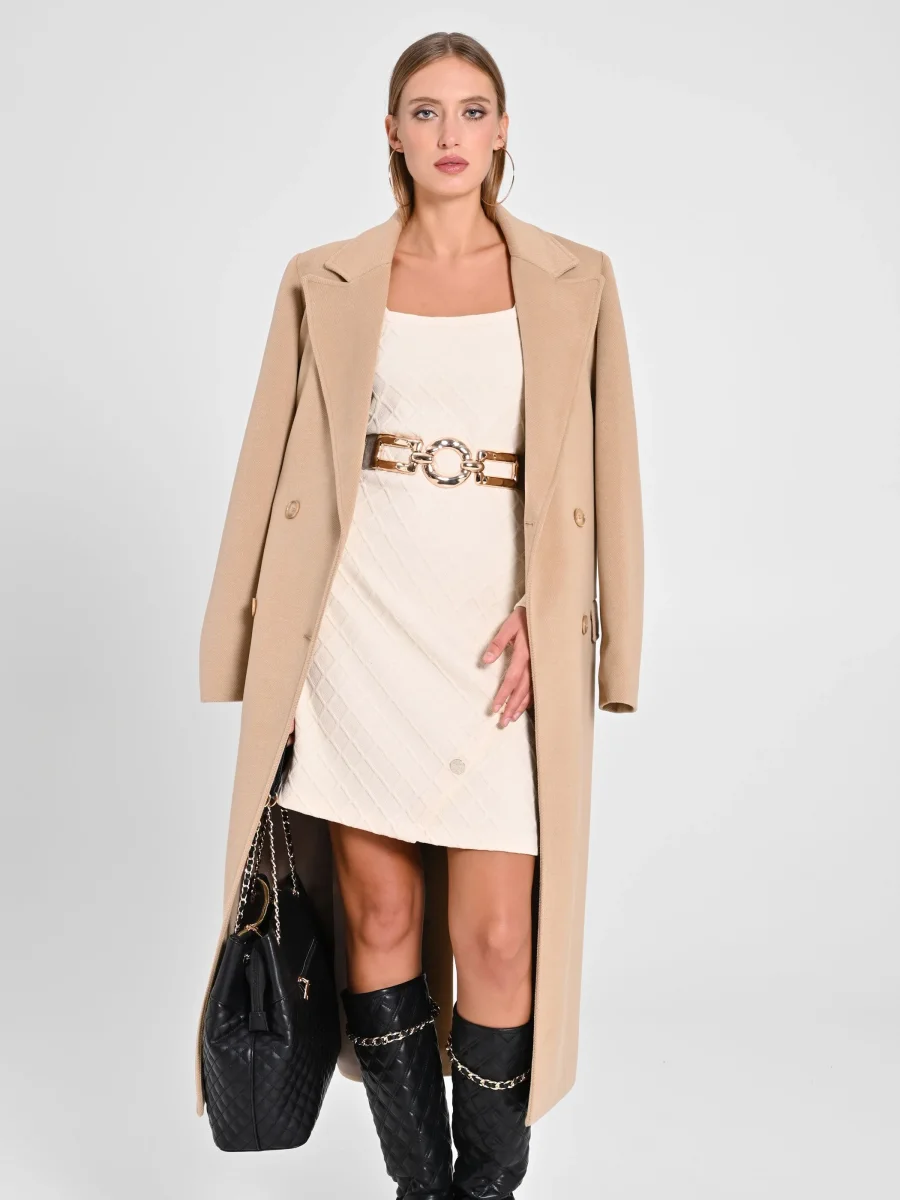 Abito modello tubino, realizzato in morbido jersey operato, con disegno rombi a rilievo. Il tubino ha lo scollo quadrato ed è decorato da una fila di bottoni decorativi apposta nella parte inferiore. L’abito bianco in tessuto operato è ideale per i mesi invernali, essendo realizzato in un tessuto caldo e morbido. Completa il tuo look […]