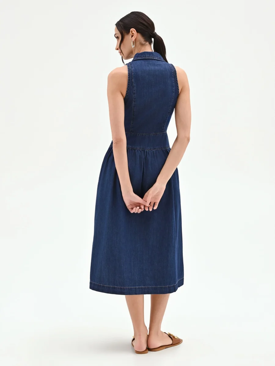 Abito chemisier blu in denim smanicato