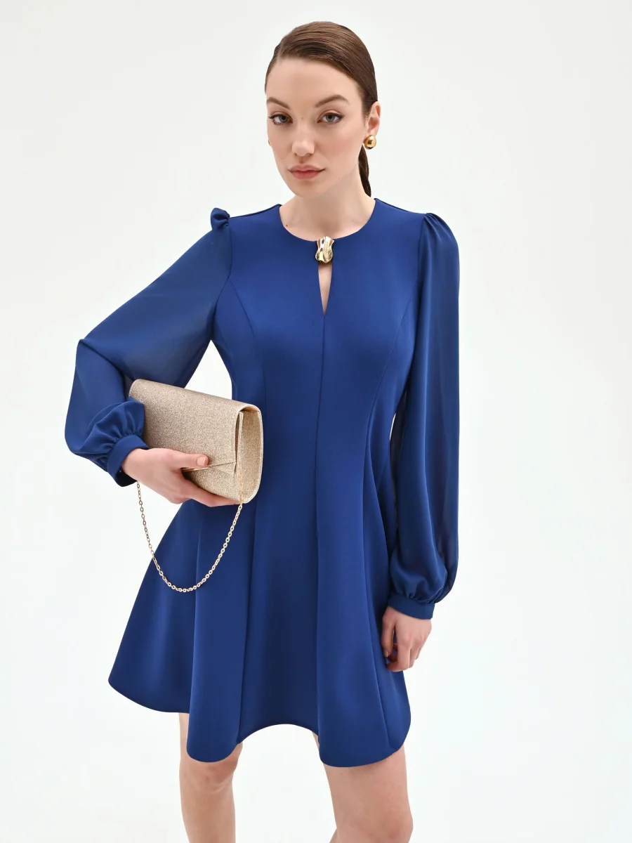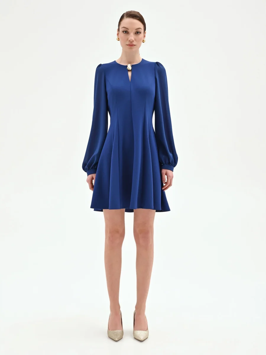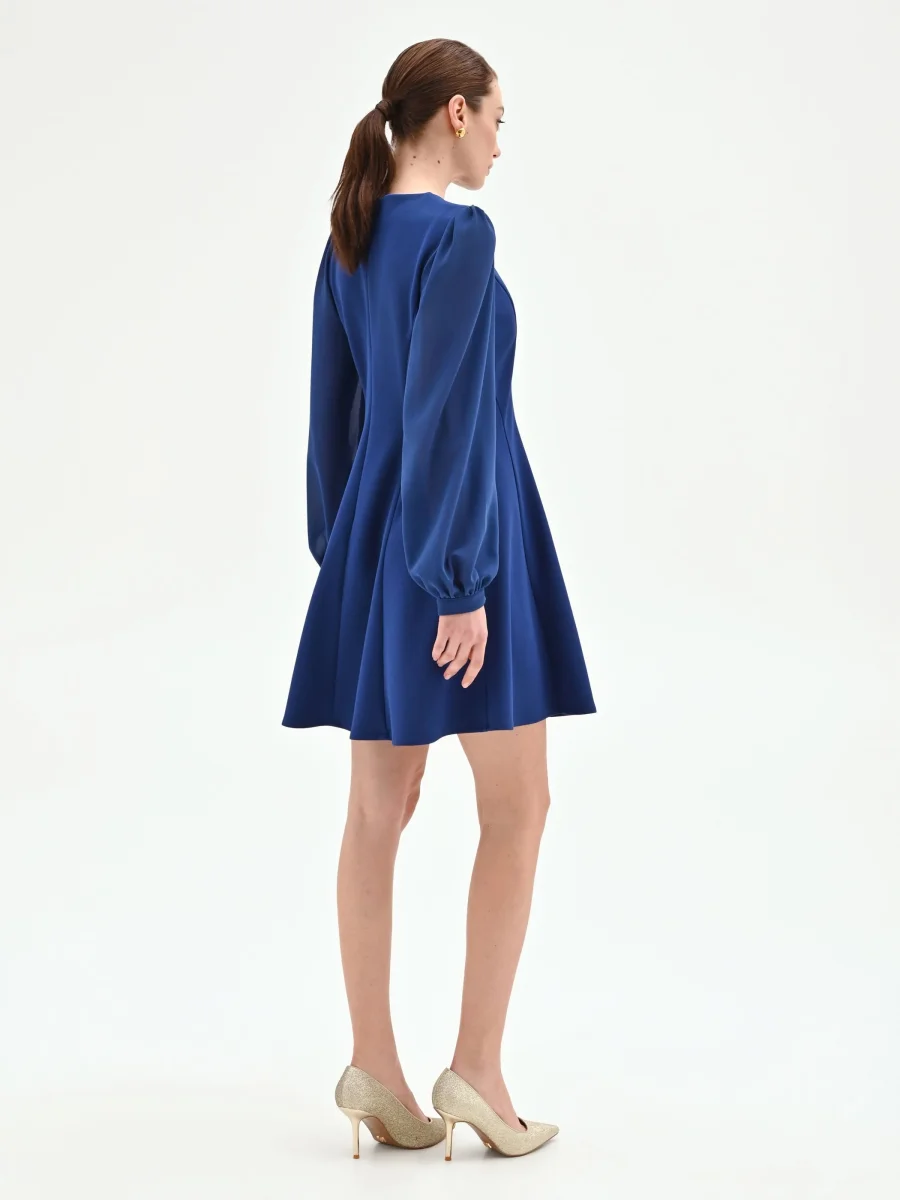 Abito corto blu con maniche a palloncino