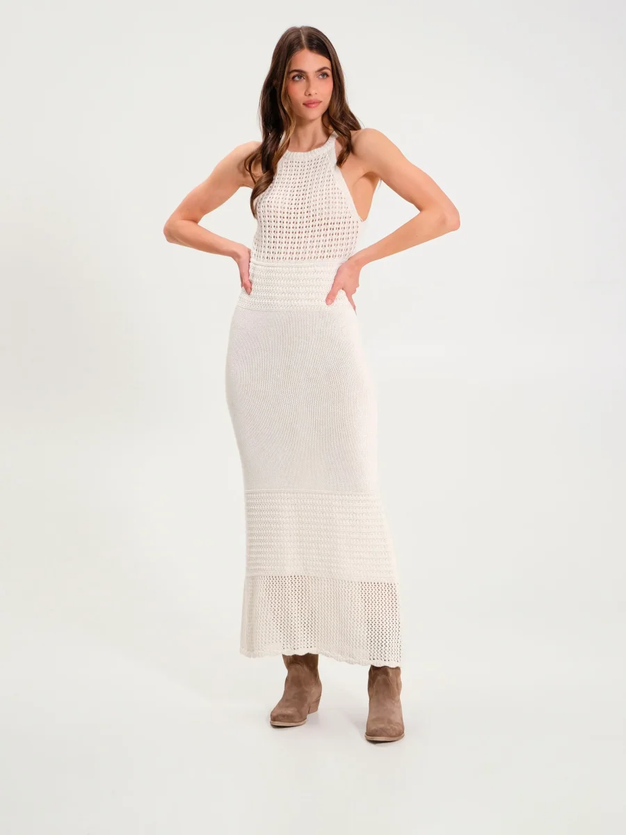 Maxi dress, interamente realizzato in cotone tinta unita lavorazione crochet. L’abito ha lo scollo all’americana e la maxi gonna presenta lavorazioni a contrasto che donano tridimensionalità al capo. Completa il tuo outfit e acquista insieme all’abito crochet bianco la nostra collezione di accessori e calzature daily, per un look casual ma sempre femminile. Il capo è interamente made in Italy. La modella è alta 1,75 m ed indossa la taglia S.