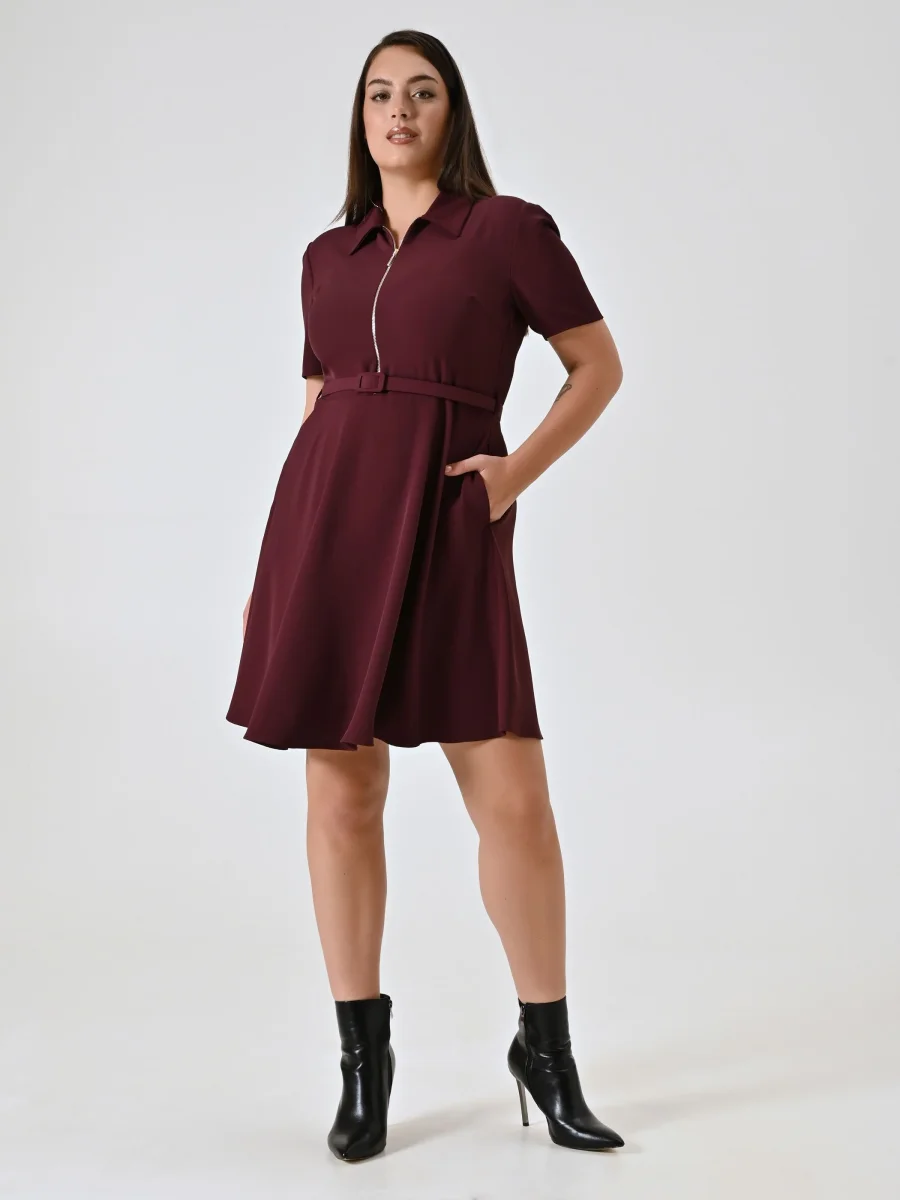 Soyez le premier à laisser votre avis sur “Abito Curvy con Zip e Colletto Bordeaux”