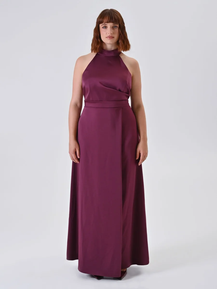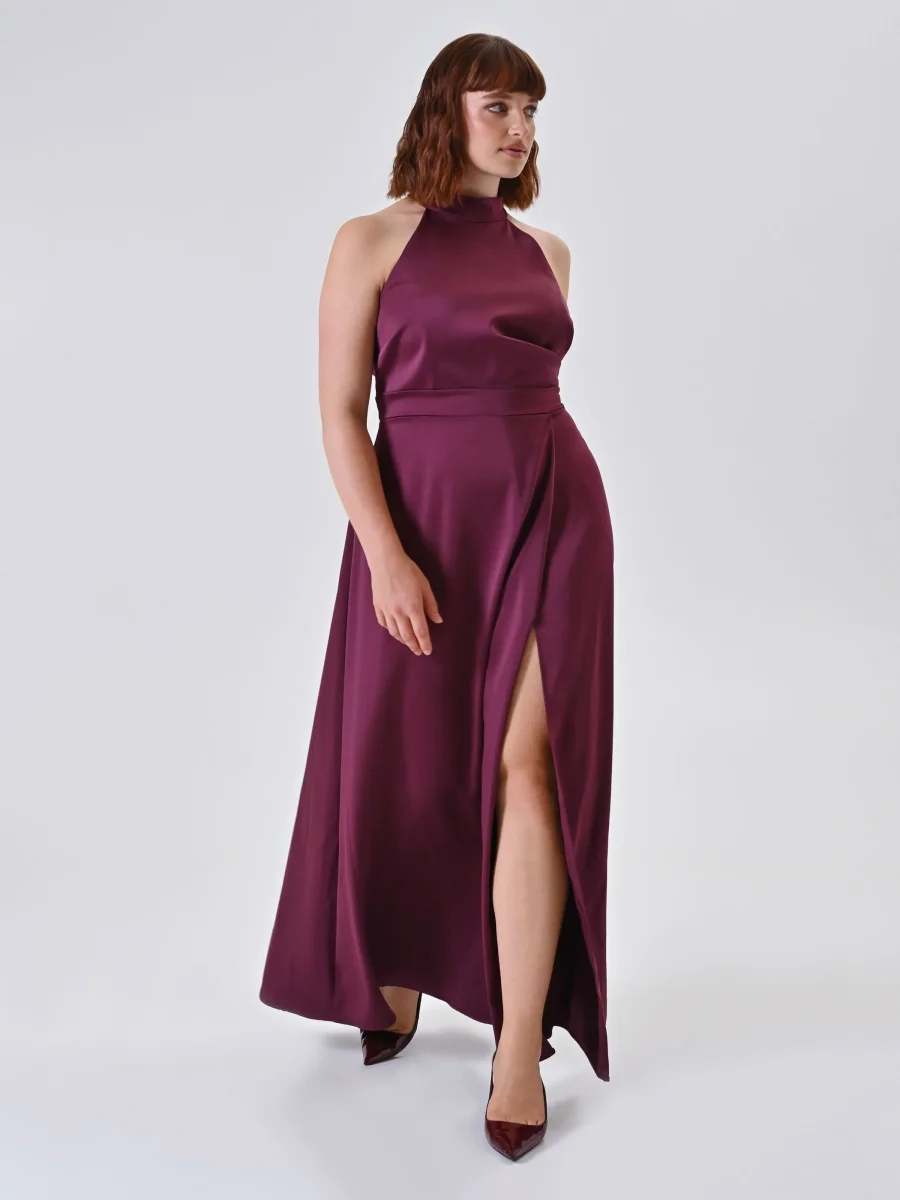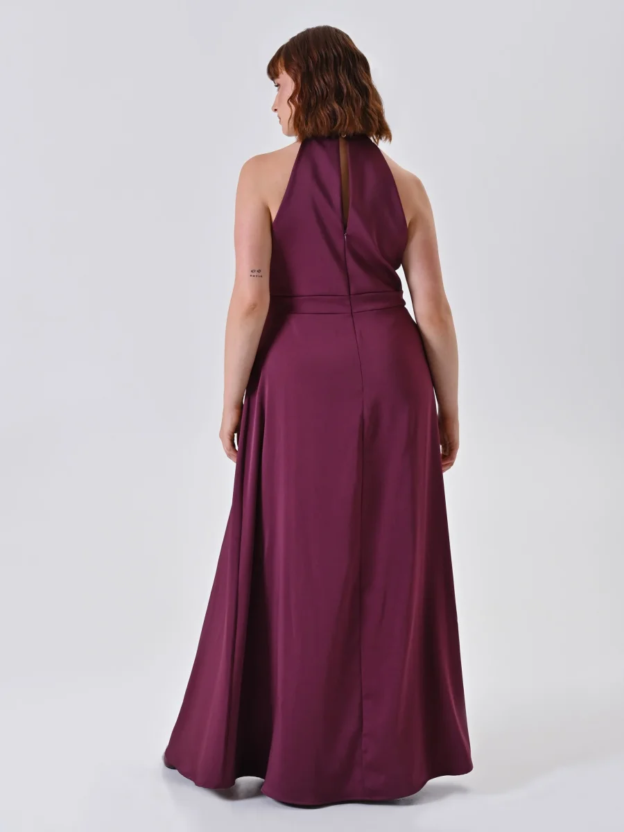 L’Abito Curvy Lungo in Raso Bordeaux è un modello elegante e sofisticato, perfetto per rendere indimenticabili le occasioni da cerimonia. Realizzato in fluido raso, avvolge la silhouette con morbidezza, mentre lo scollo all’americana dona slancio alla figura. Il drappeggio frontale esalta il punto vita e la gonna lunga con spacco aggiunge movimento e sensualità. La chiusura con zip e bottoncini garantisce una vestibilità confortevole e sicura. L’Abito Curvy Lungo in Raso Bordeaux si abbina perfettamente a una stola coordinata e si completa con calzature e accessori di collezione per un look cerimonia impeccabile. Ideale per chi desidera un capo femminile e versatile, l’Abito Curvy Lungo in Raso Bordeaux unisce raffinatezza e comfort. • Il capo è Made in Italy • La modella è alta 1,78 m ed indossa la taglia S.