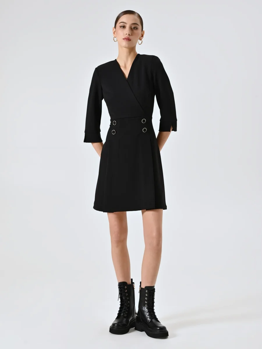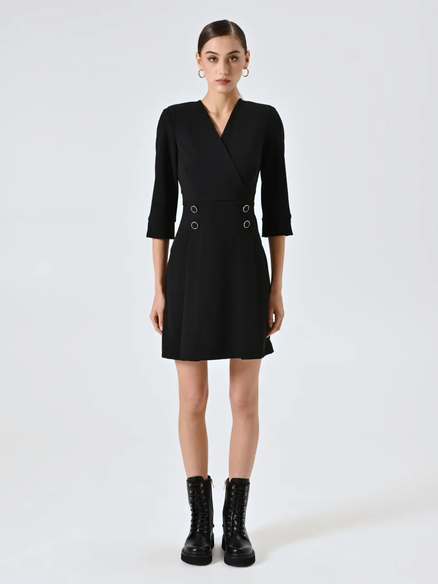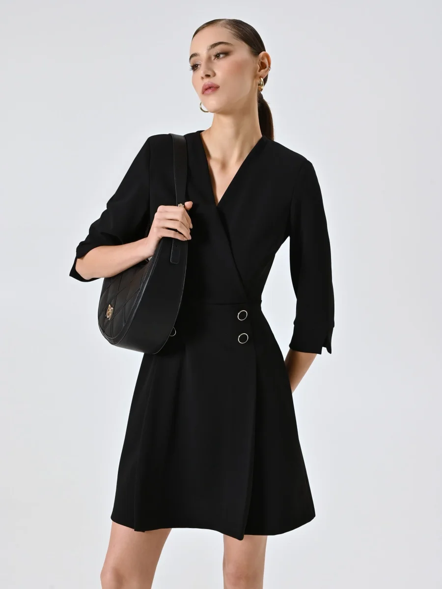 L’Abito effetto Doppiopetto è una proposta elegante e contemporanea, perfetta per valorizzare la silhouette in modo femminile e deciso.