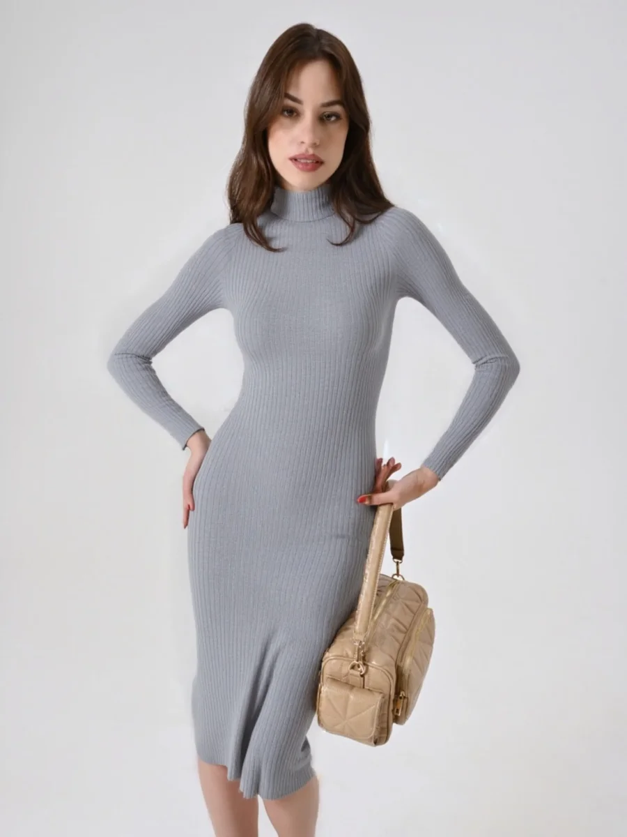 Realizzato in maglia con lavorazione a coste, l’Abito in Maglia con Flessage è caratterizzato da un collo lupetto che avvolge delicatamente il collo, una gonna a ruota che dona movimento e una linea svasata che valorizza ogni silhouette. L’assenza di chiusura rende il capo ancora più pratico e piacevole da indossare, perfetto per chi cerca comfort senza rinunciare allo stile.