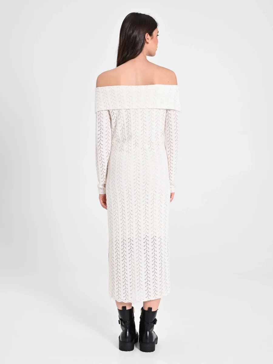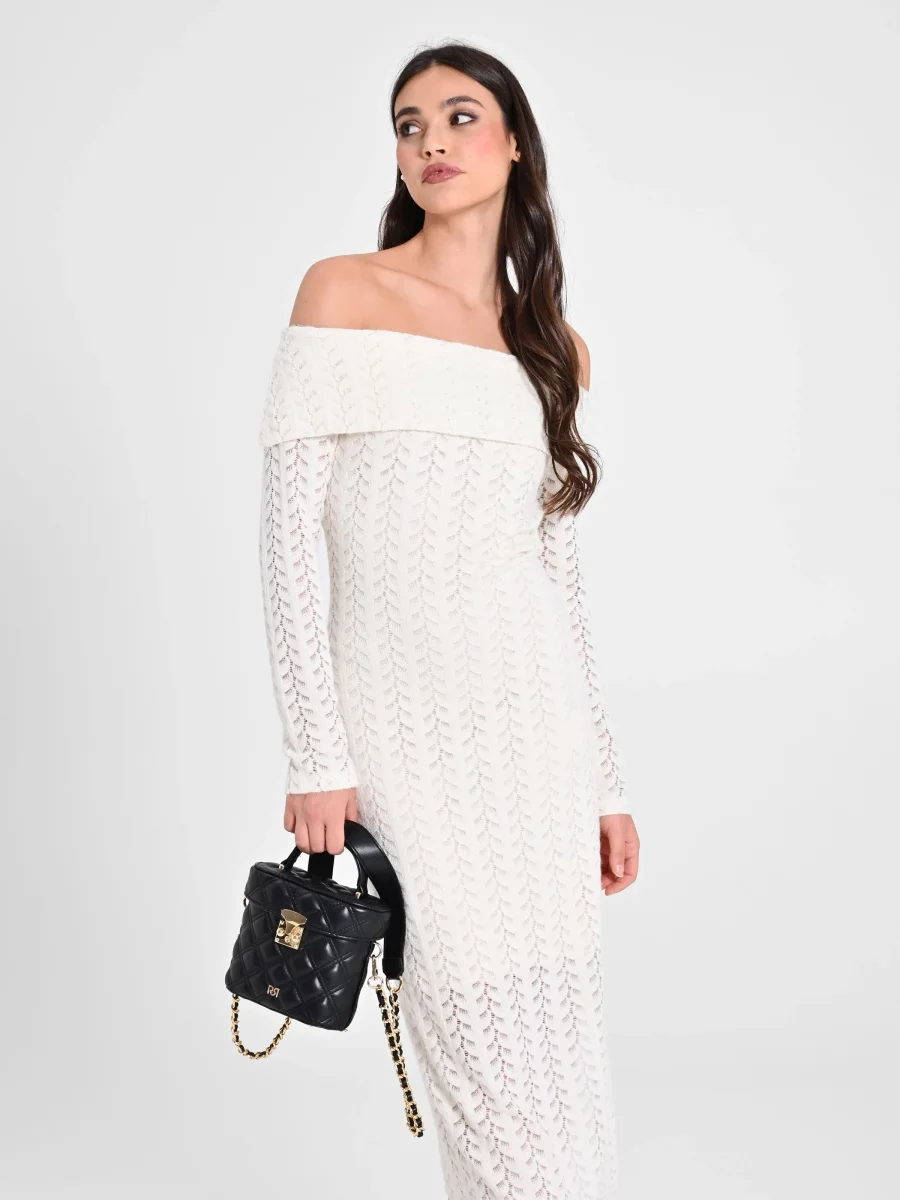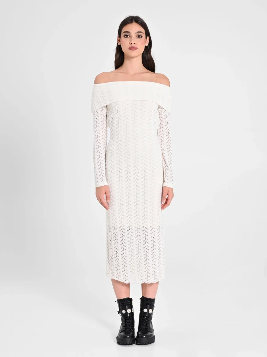 Abito midi, realizzato in morbido pizzo rebrodè elasticizzato, doppiato sul fronte e sul retro. L’abito ha uno scollo ribaltato, che lascia scoperte parzialmente le spalle. Completa il tuo outfit ed abbina all’abito in pizzo rebrodè la nostra collezione di scarpe ed accessori. Il capo è interamente made in Italy. La modella è alta 1,74 ed indossa la taglia S. Il capo in taglia S corrisponde alle seguenti misure: Il seno misura 39 cm, la vita misura 35 cm,la lunghezza è 110 cm.