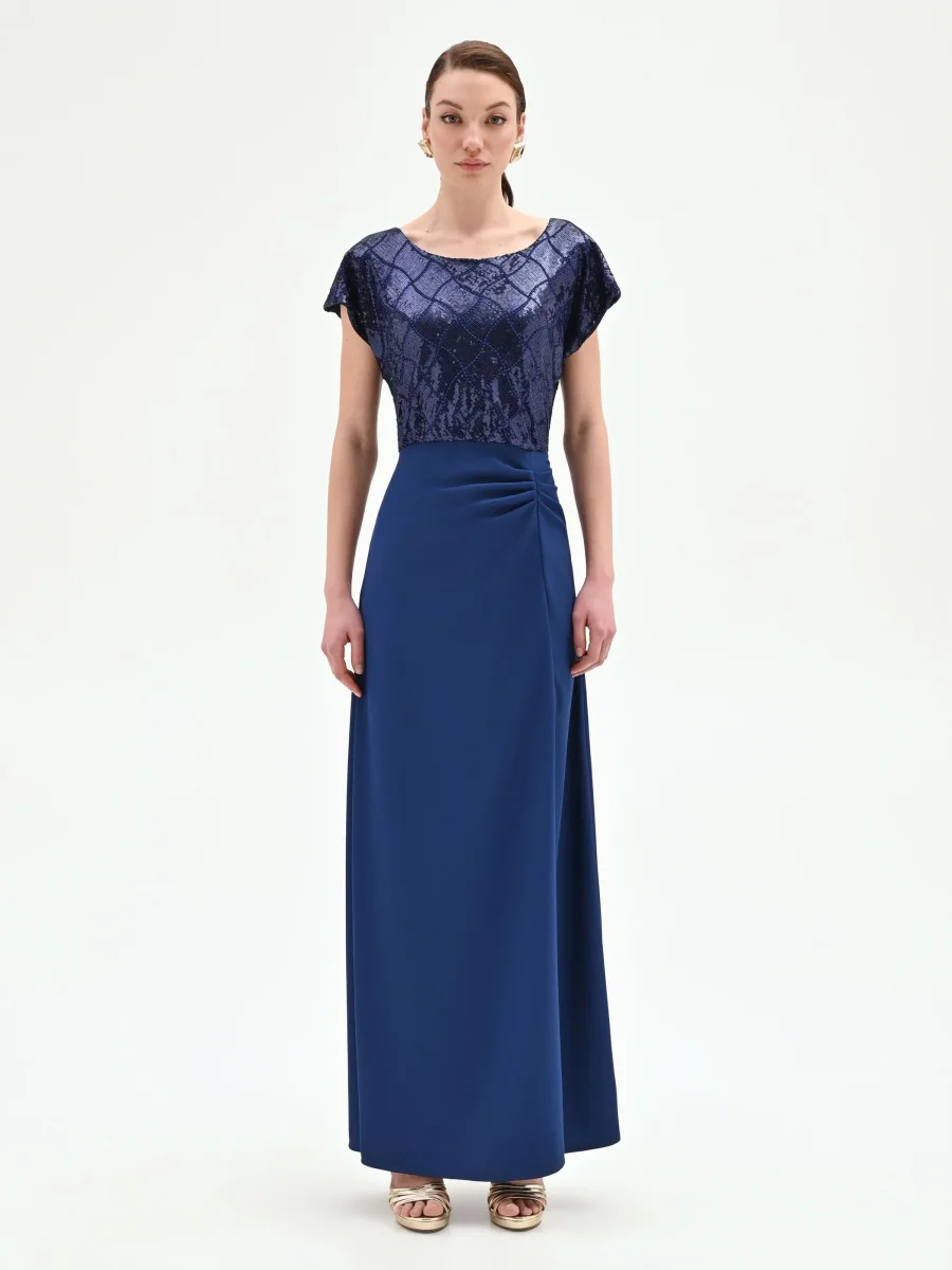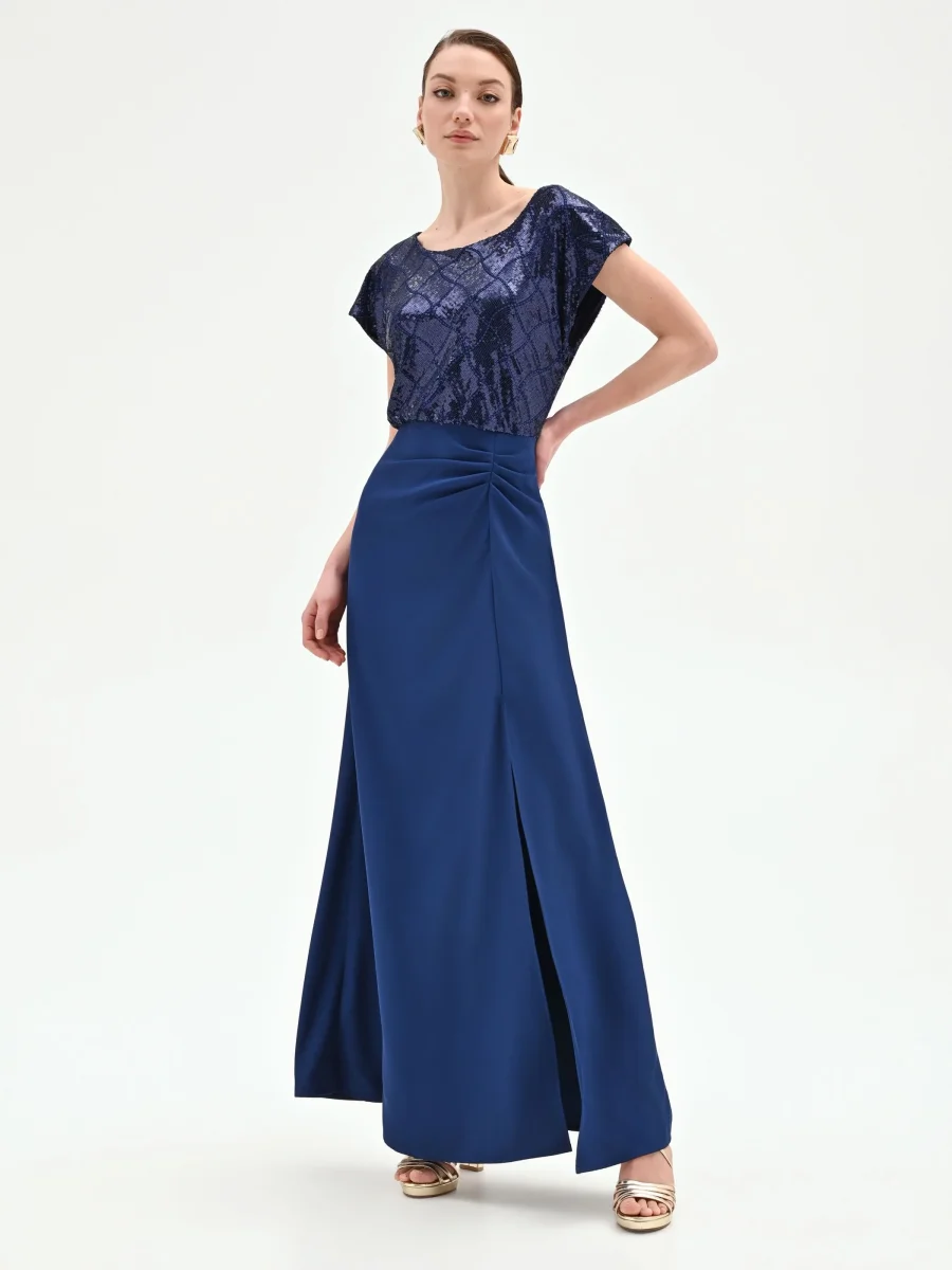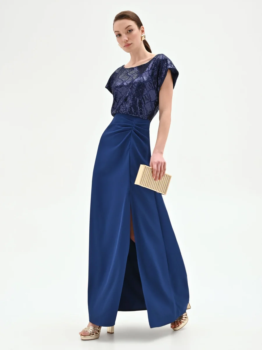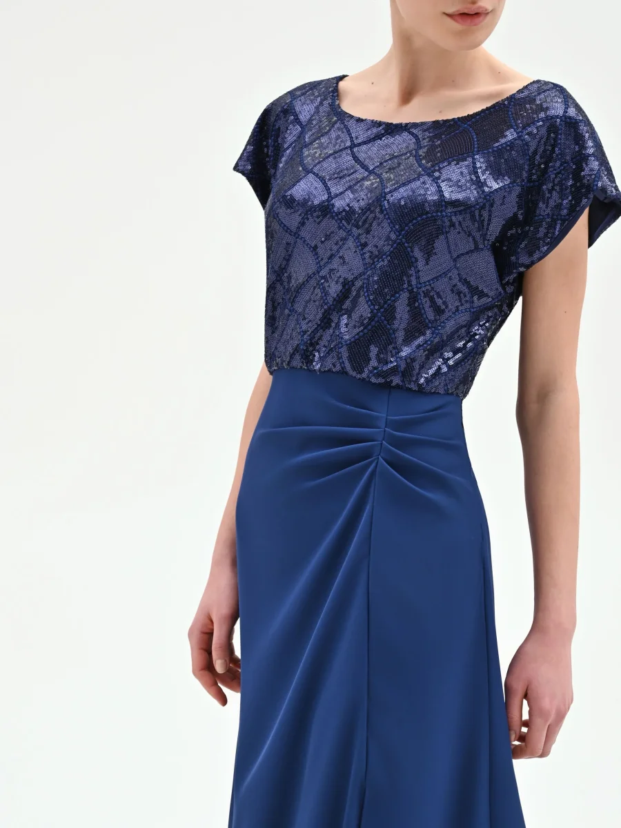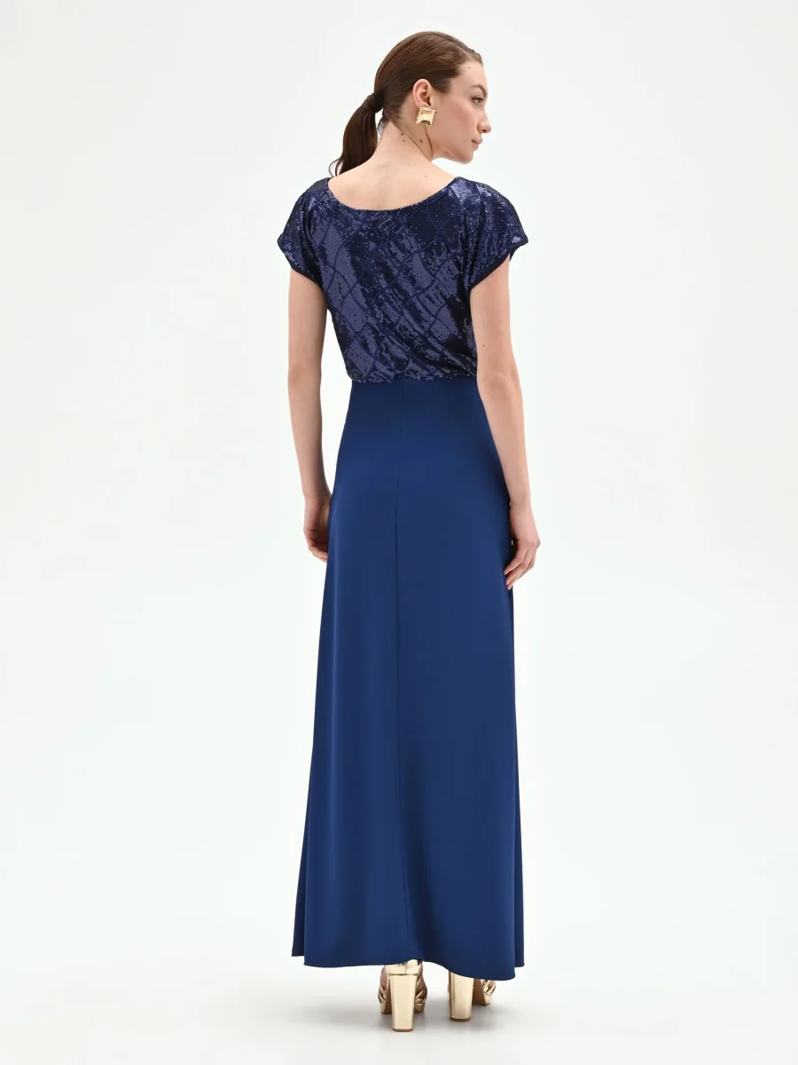 Soyez le premier à laisser votre avis sur “Abito lungo blu brillante con corpino di paillettes”