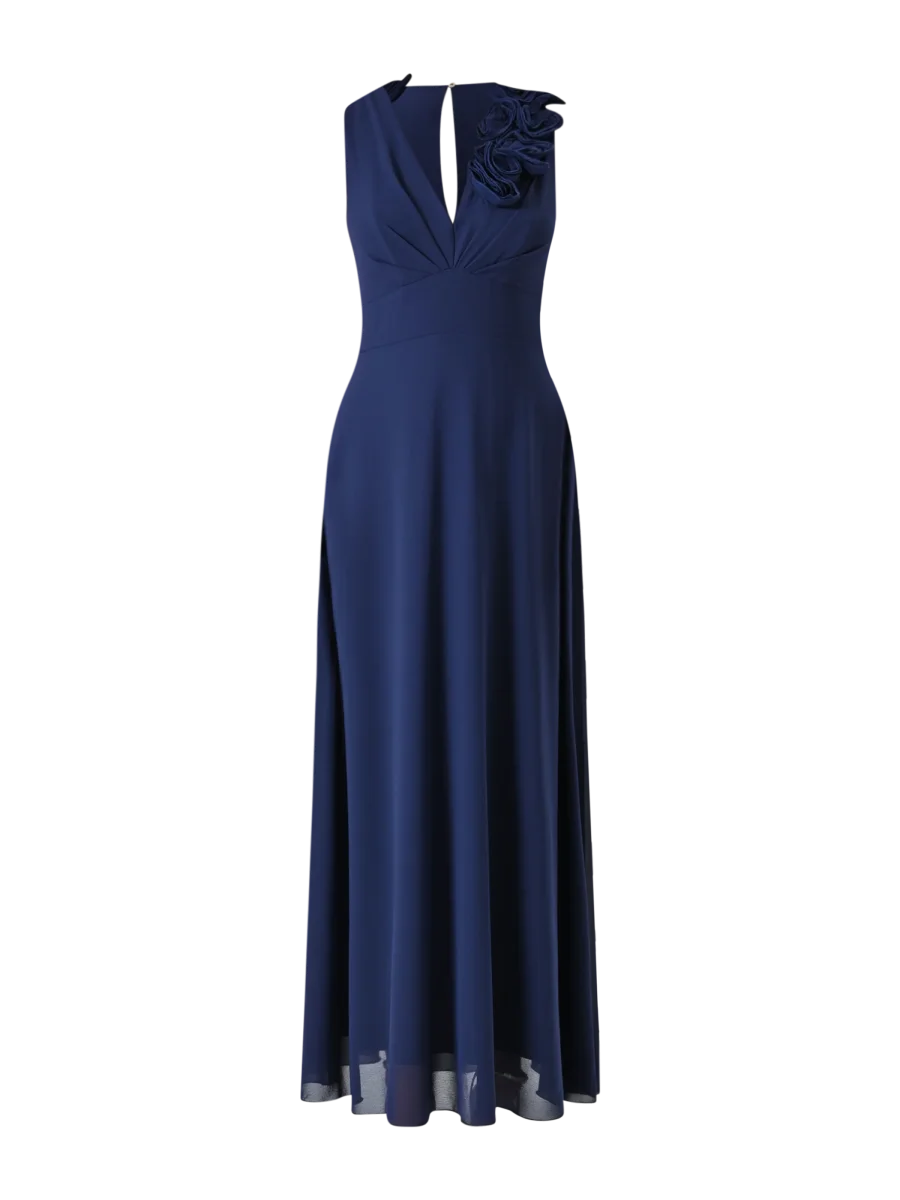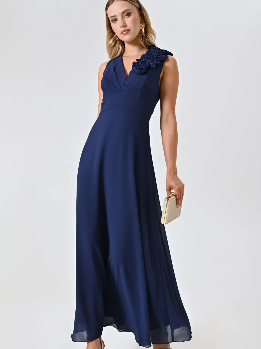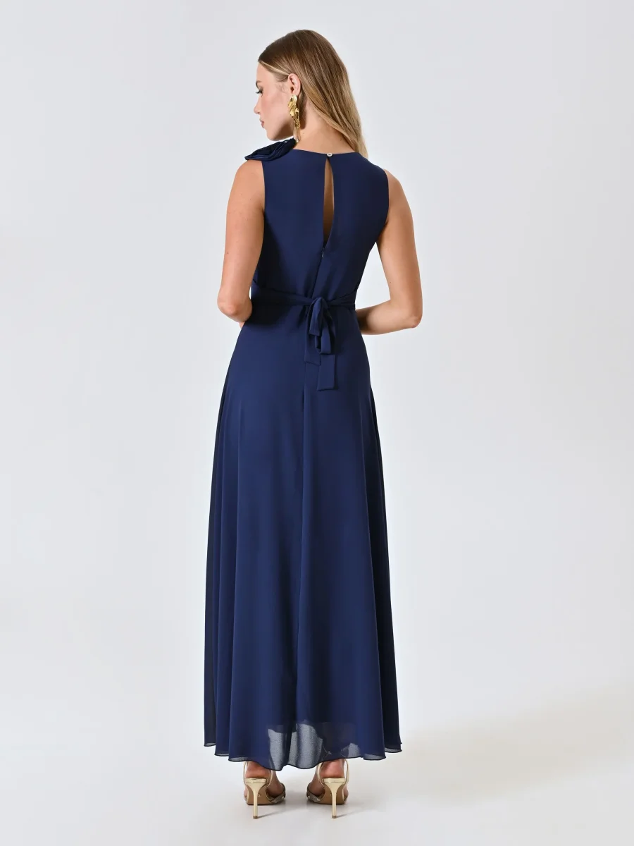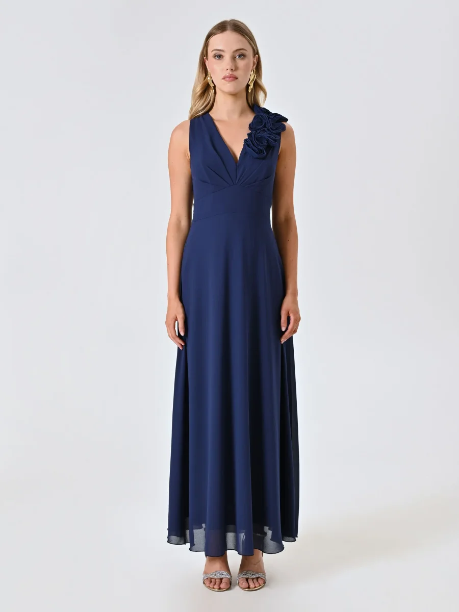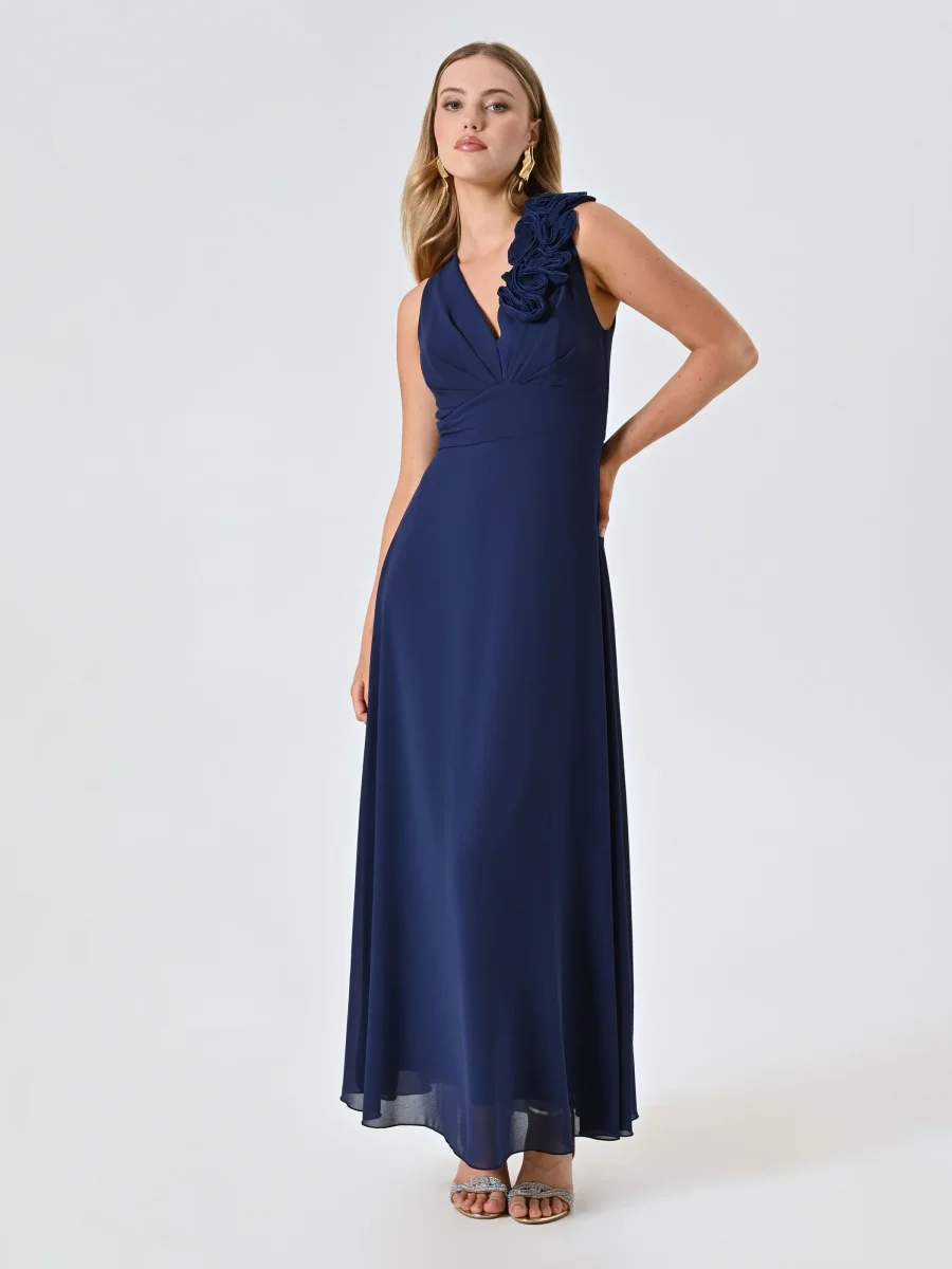 L’Abito Lungo Blu con decoro Fiori in Rilievo è pensato per accompagnare con eleganza cerimonie e momenti speciali, esprimendo femminilità attraverso dettagli ricercati e una silhouette fluida. Realizzato in georgette, l’Abito Lungo Blu con decoro Fiori in Rilievo è caratterizzato da uno scollo a V drappeggiato impreziosito da fiori tridimensionali cuciti sul décolleté, una banda in vita che valorizza la figura e sottili nastri posteriori. La chiusura con zip e fiocco completa il design con discrezione. L’Abito Lungo Blu con decoro Fiori in Rilievo si abbina perfettamente a una stola leggera o a un blazer di collezione, da completare con calzature e accessori eleganti. Per un fit impeccabile scegli la collezione Lingerie Rinascimento. Indossalo per cerimonie o eventi speciali in cui desideri distinguerti con uno stile romantico e raffinato.