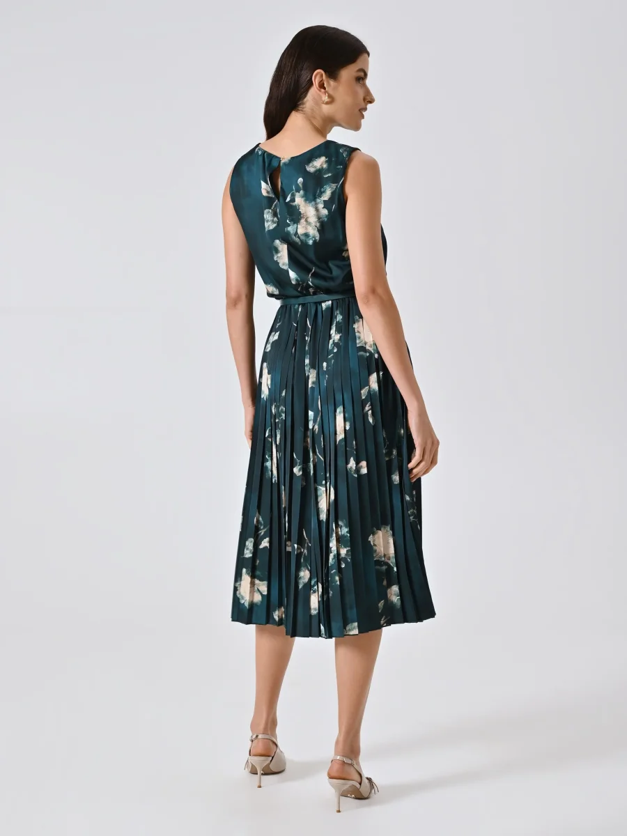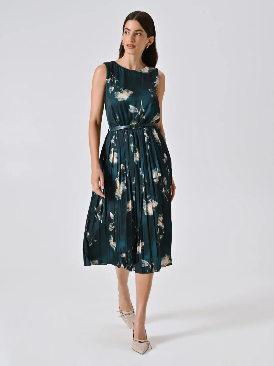 L’Abito Plissé Verde stampa Floreale è un inno alla femminilità contemporanea, con un’eleganza naturale che conquista al primo sguardo.
