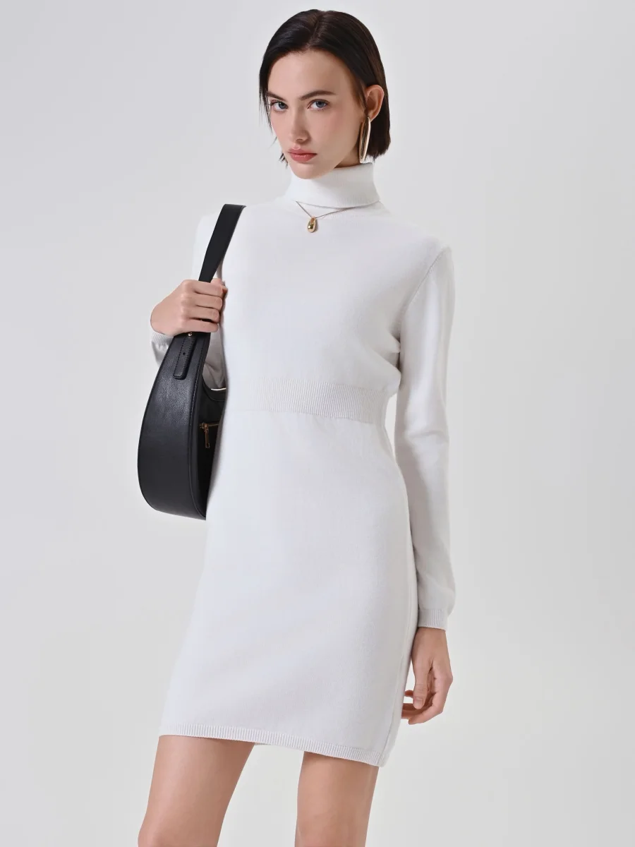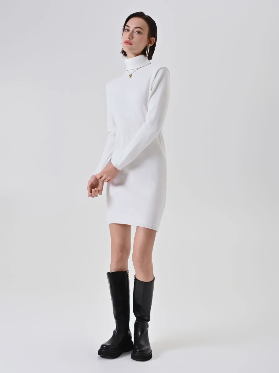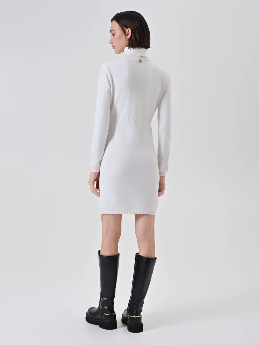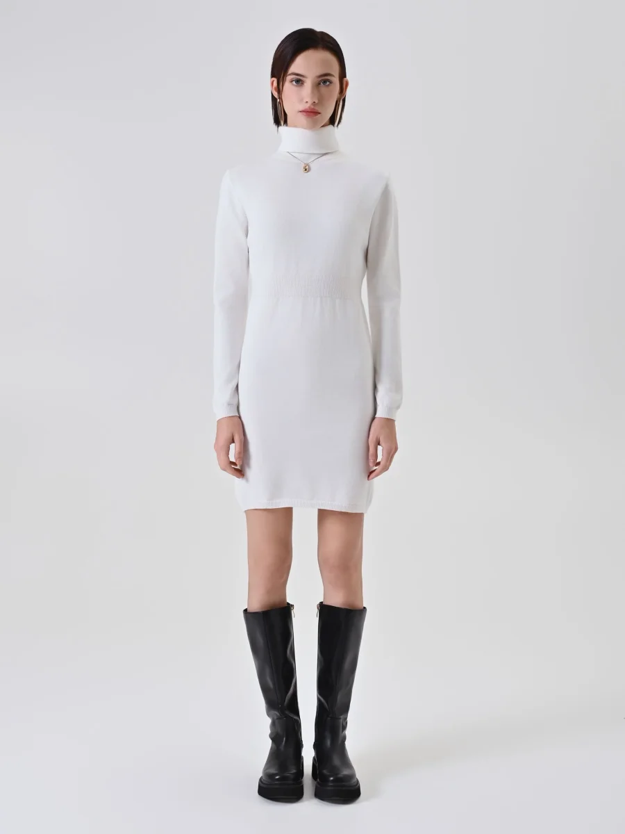 L’abito tubino in maglia bianco panna interpreta con eleganza la femminilità quotidiana, presentandosi come il capo perfetto per la stagione invernale. Un pezzo chiave pensato per chi cerca comfort e stile in un’unica soluzione.
