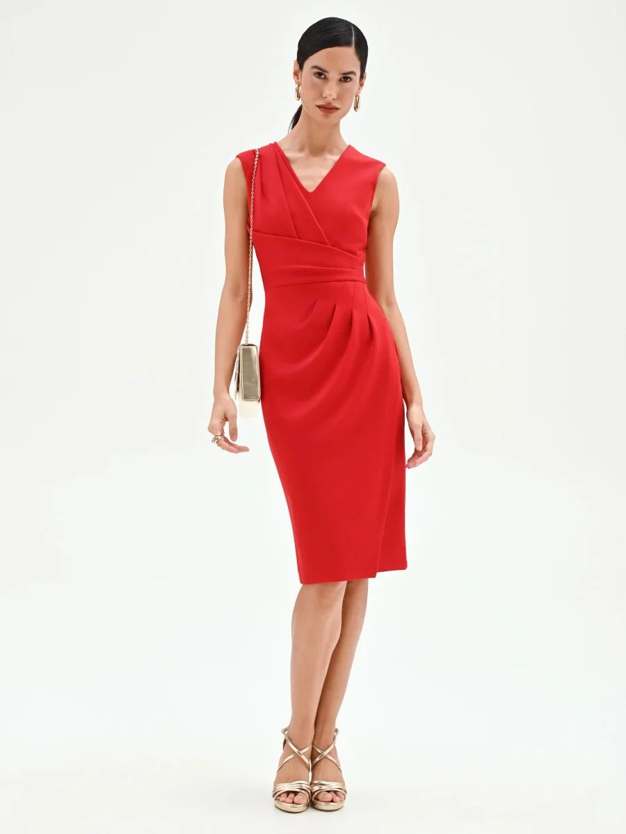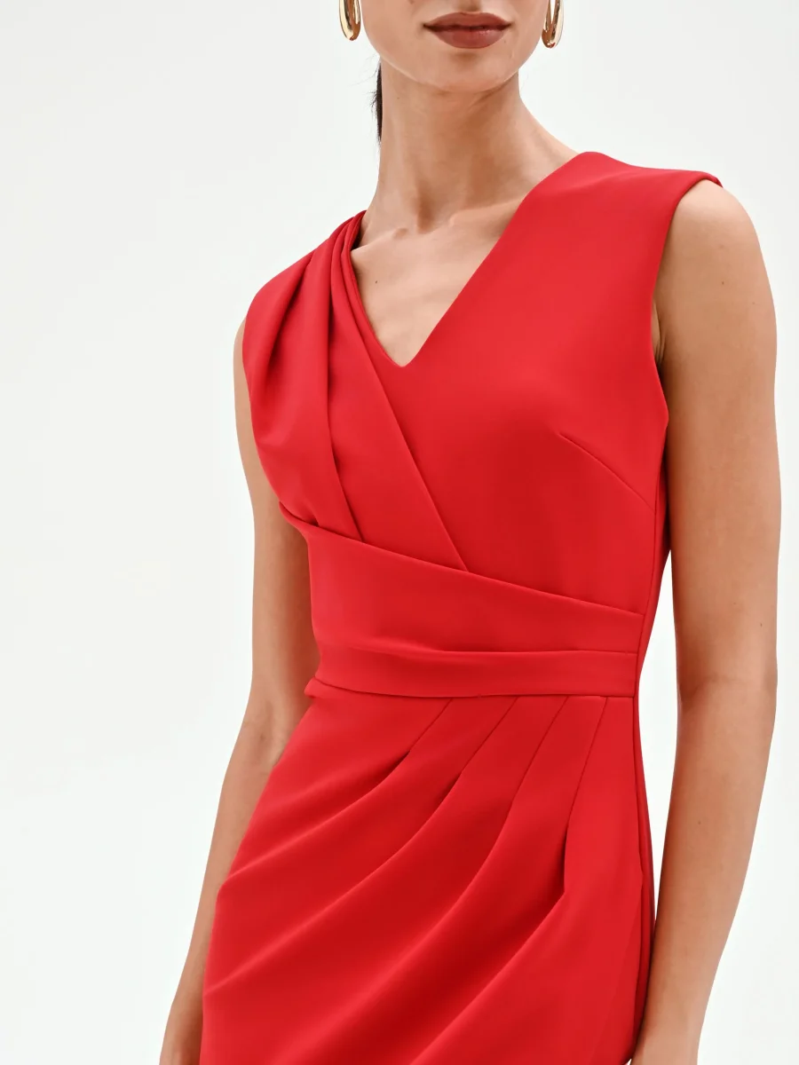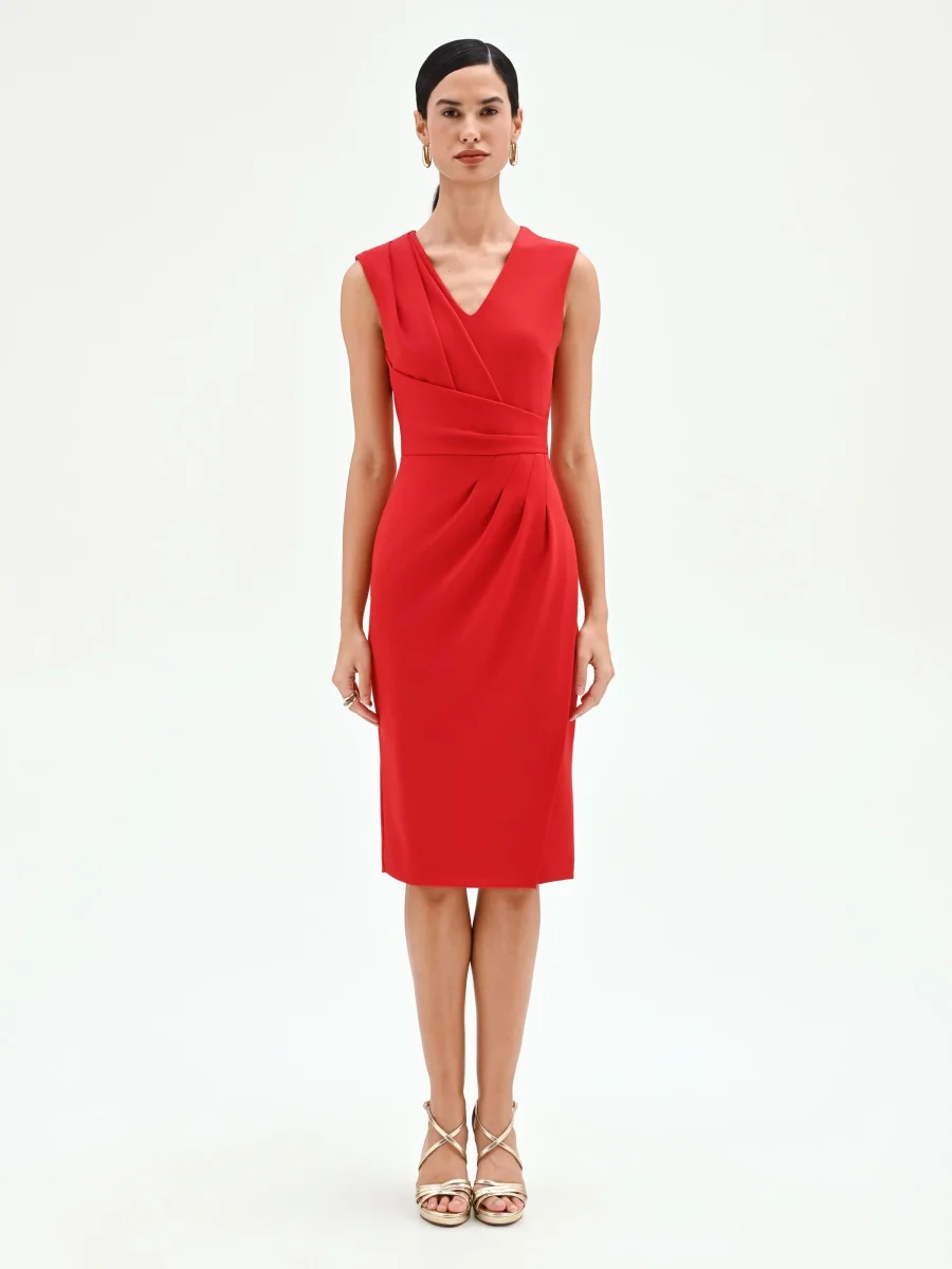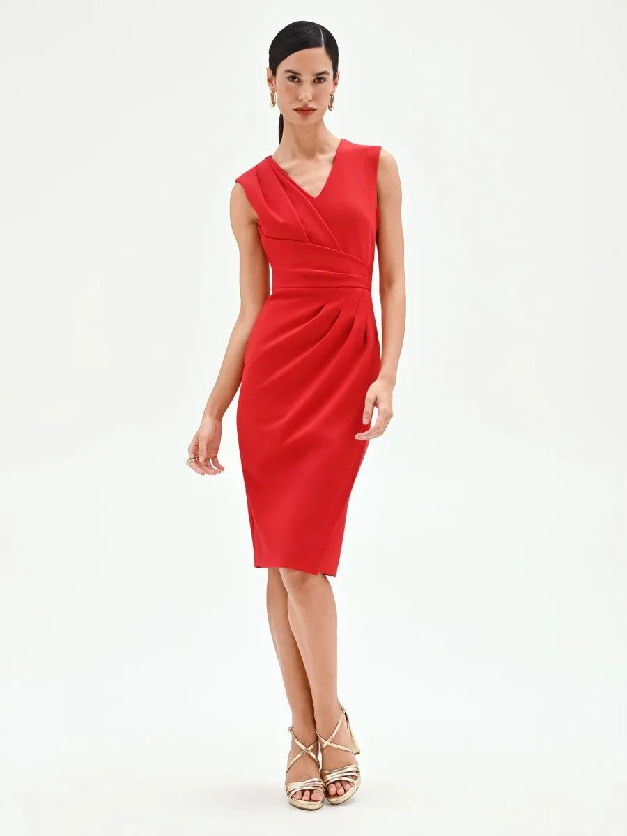 La silhouette si anima attraverso un design studiato e dinamico in questo abito tubino rosso, espressione di una femminilità moderna e consapevole.