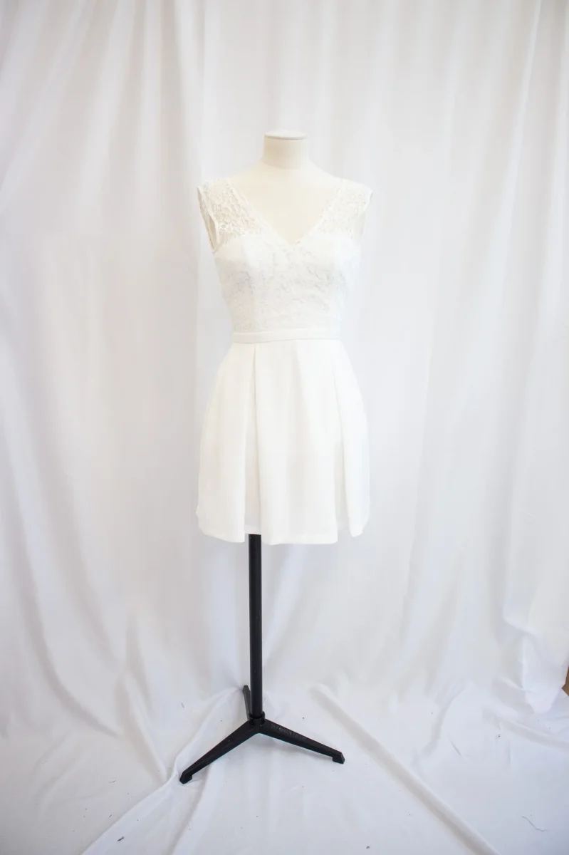 Fabriqué en France ⬇ message alerte ⬇ Attention ! La vente privée se déroule exclusivement en ligne. Aucun essayage n’est possible au showroom. Description Matières : – Polyester et dentelle Couleurs : – Blanc Conseils D’entretien Livraison et Retours