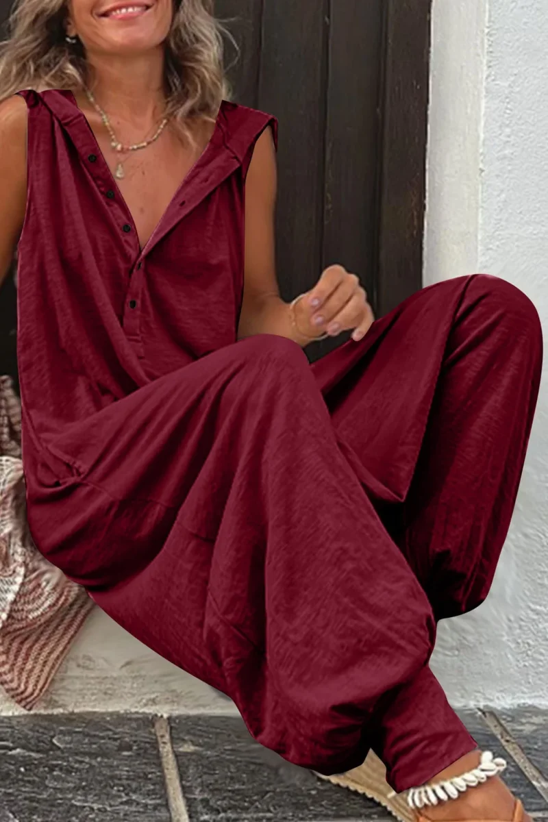 Blandette – Combinaison sans manches unie avec capuche et coupe décontractée pour femme, confort et style