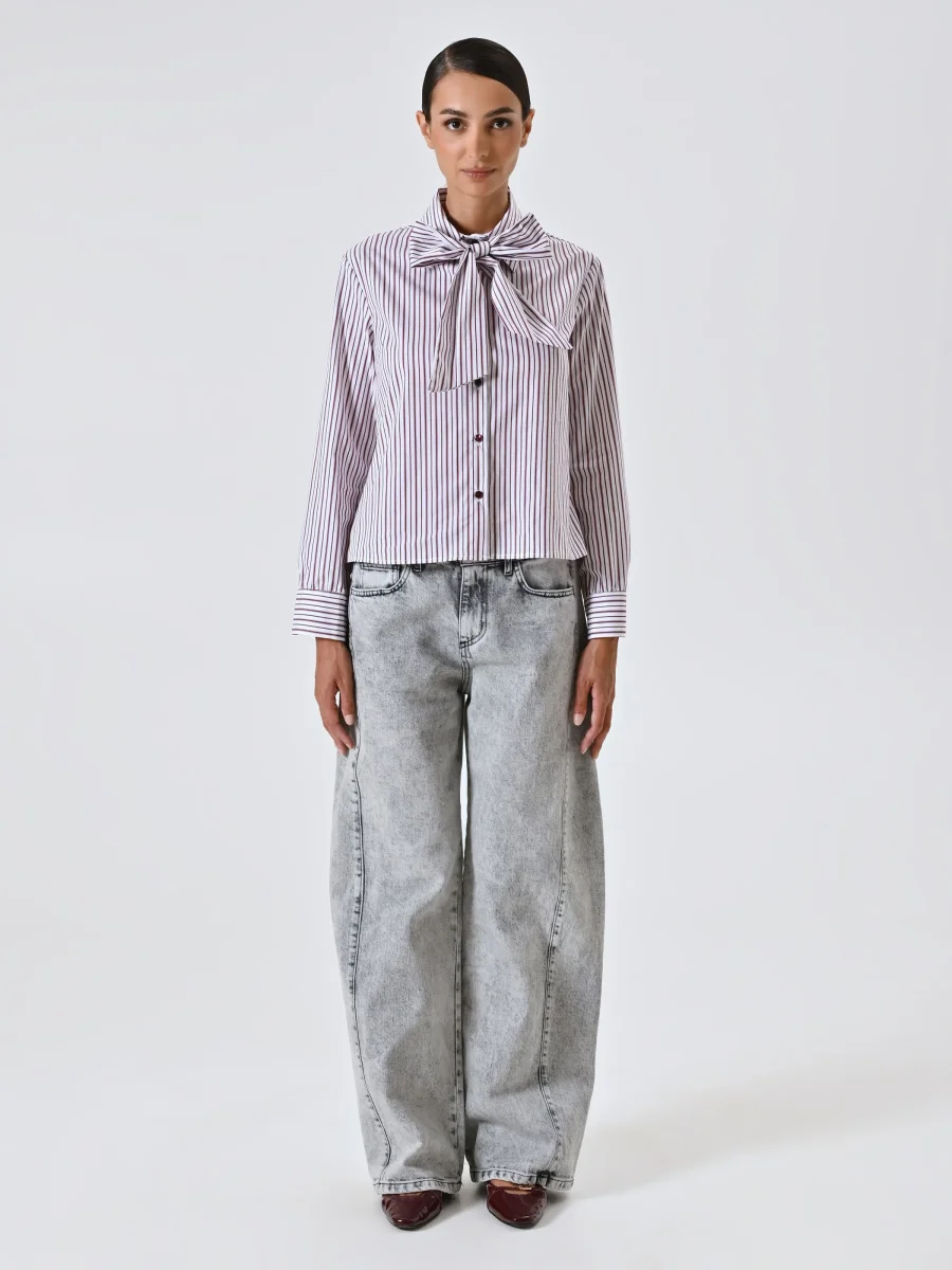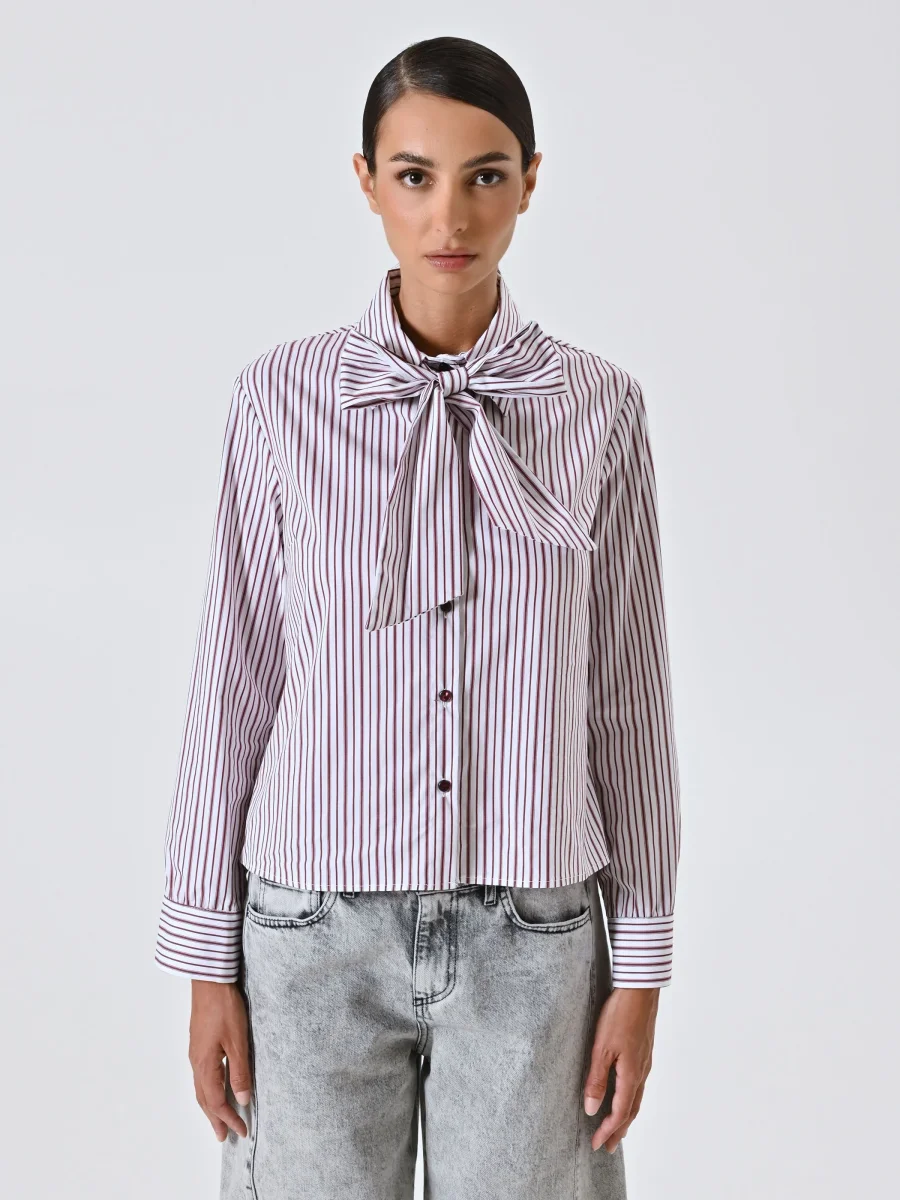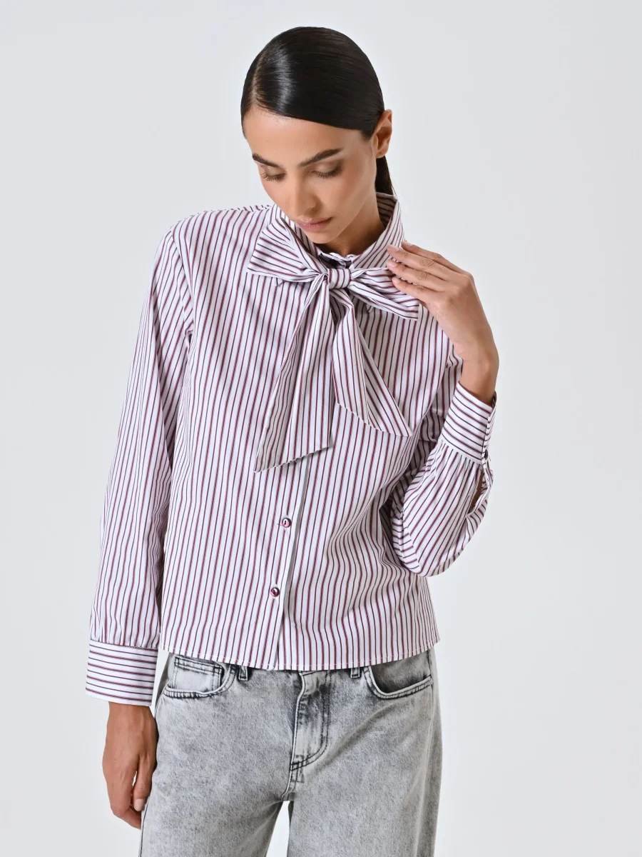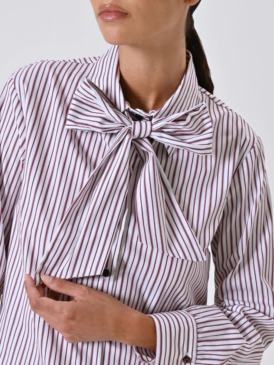 Camicia a Righe Bordeaux con Fiocco