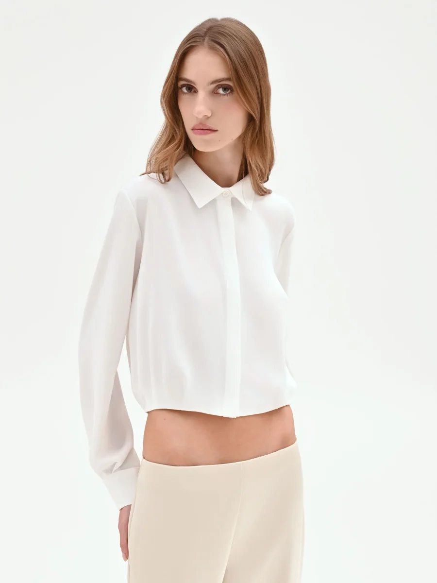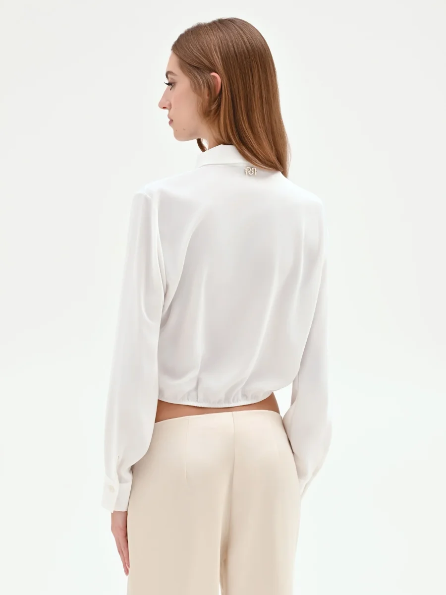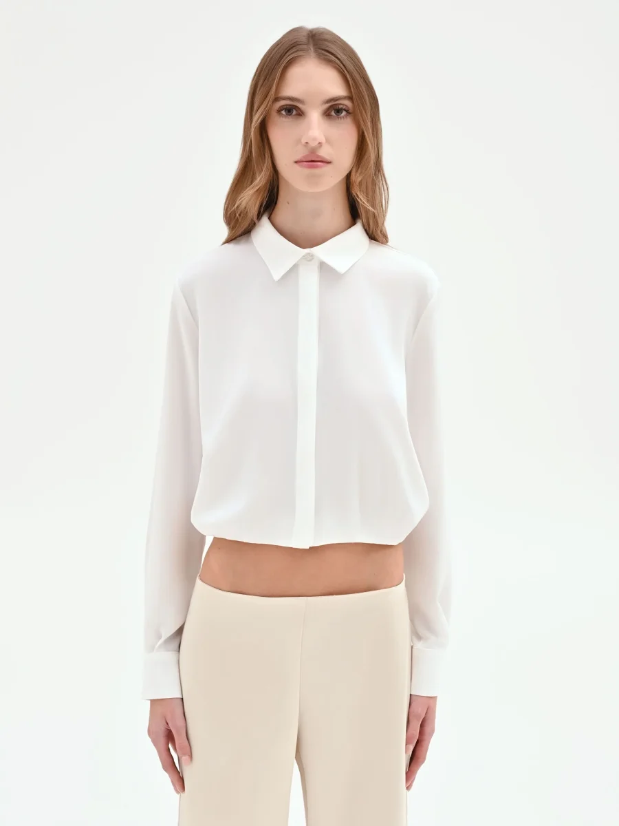 Soyez le premier à laisser votre avis sur “Camicia cropped panna con fondo elastico”