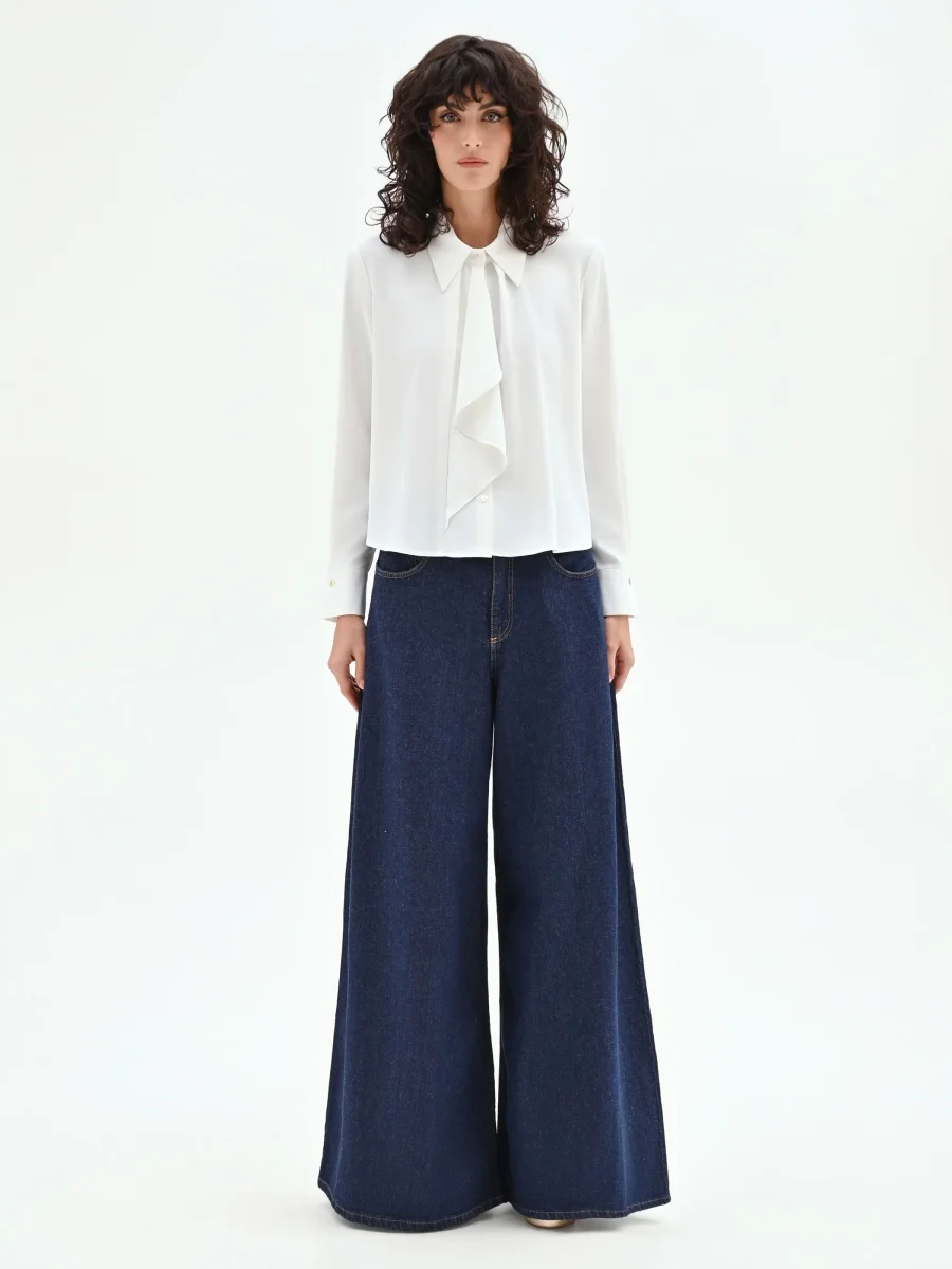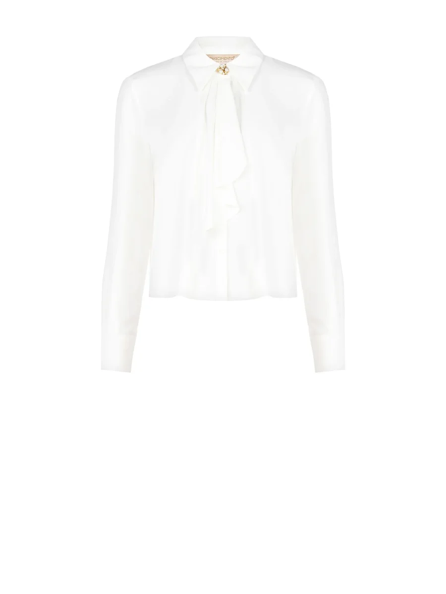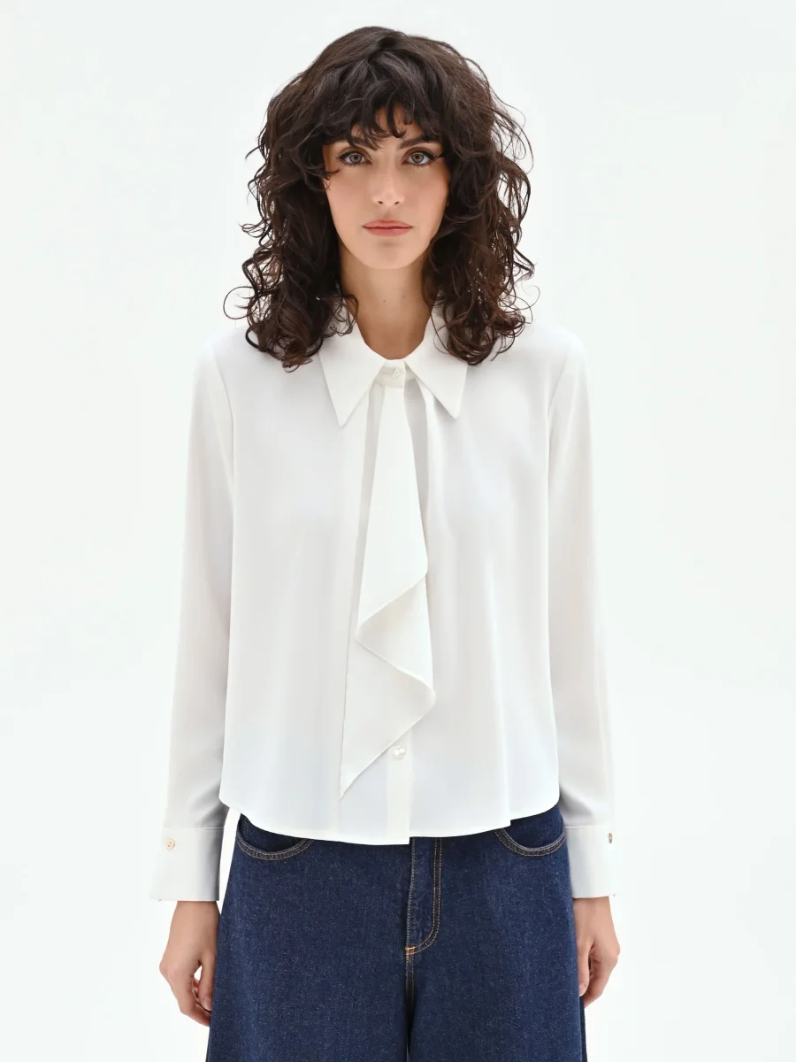 Camicia panna bianco con morbida rouche asimmetrica