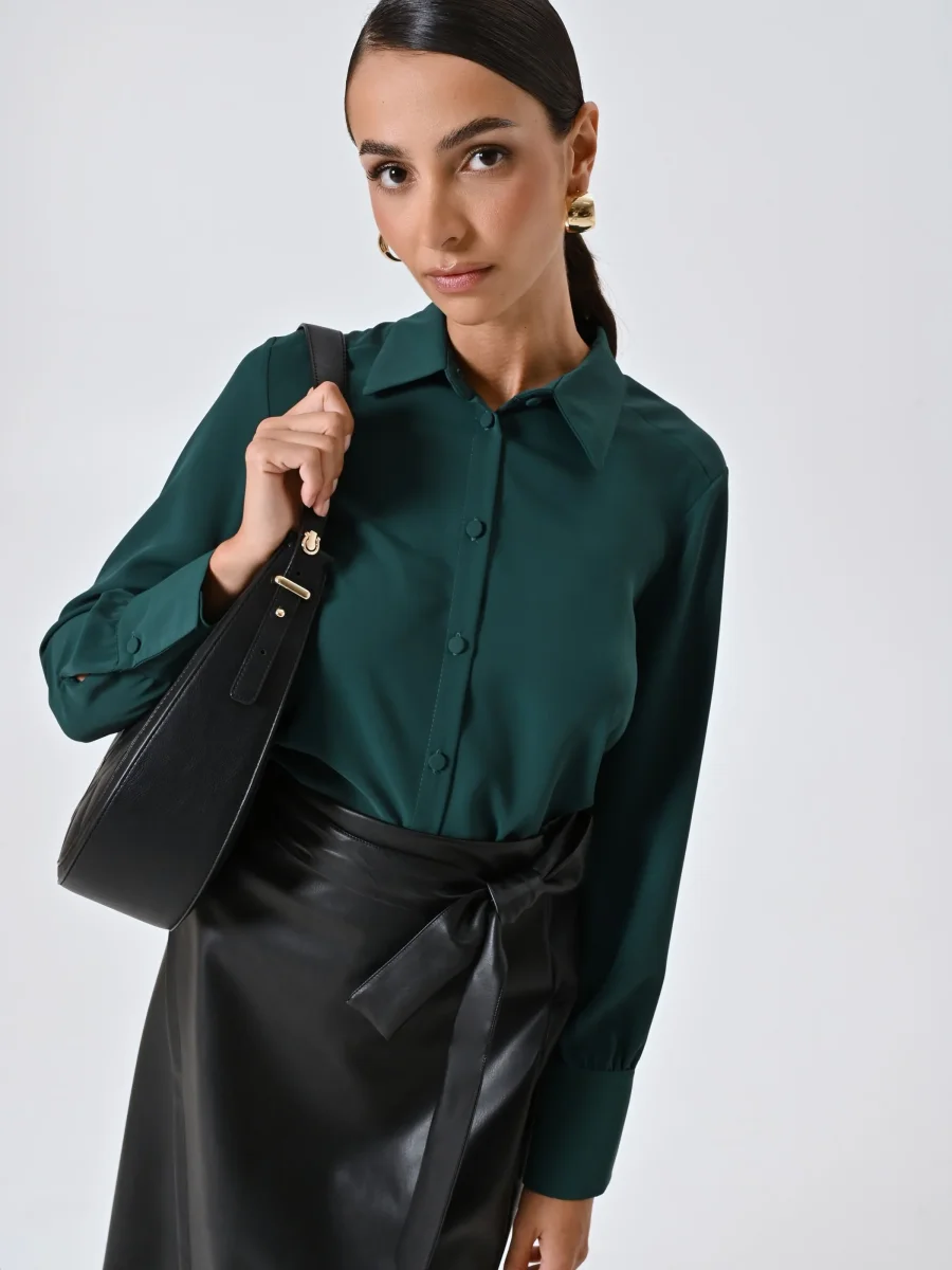 La Camicia con Bottoncini Ricoperti è un capo essenziale e raffinato, pensato per completare con eleganza i look da giorno. Realizzata in raso dalla mano fluida e luminosa, la Camicia con Bottoncini Ricoperti presenta una linea classica, bottoncini tono su tono ricoperti in tessuto e polsini alti che definiscono il design con un tocco sofisticato. L’abbottonatura frontale rende il capo pratico e versatile. La Camicia con Bottoncini Ricoperti si abbina perfettamente a jeans, pantaloni o gonne, a seconda dell’occasione. Completala con calzature ed accessori di collezione. Per un fit impeccabile scegli la collezione Lingerie Rinascimento. Ideale per creare look da ufficio dall’eleganza senza tempo.