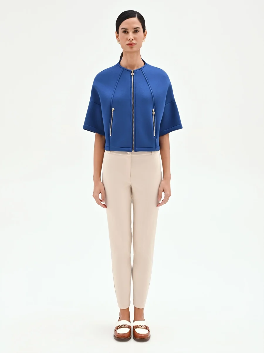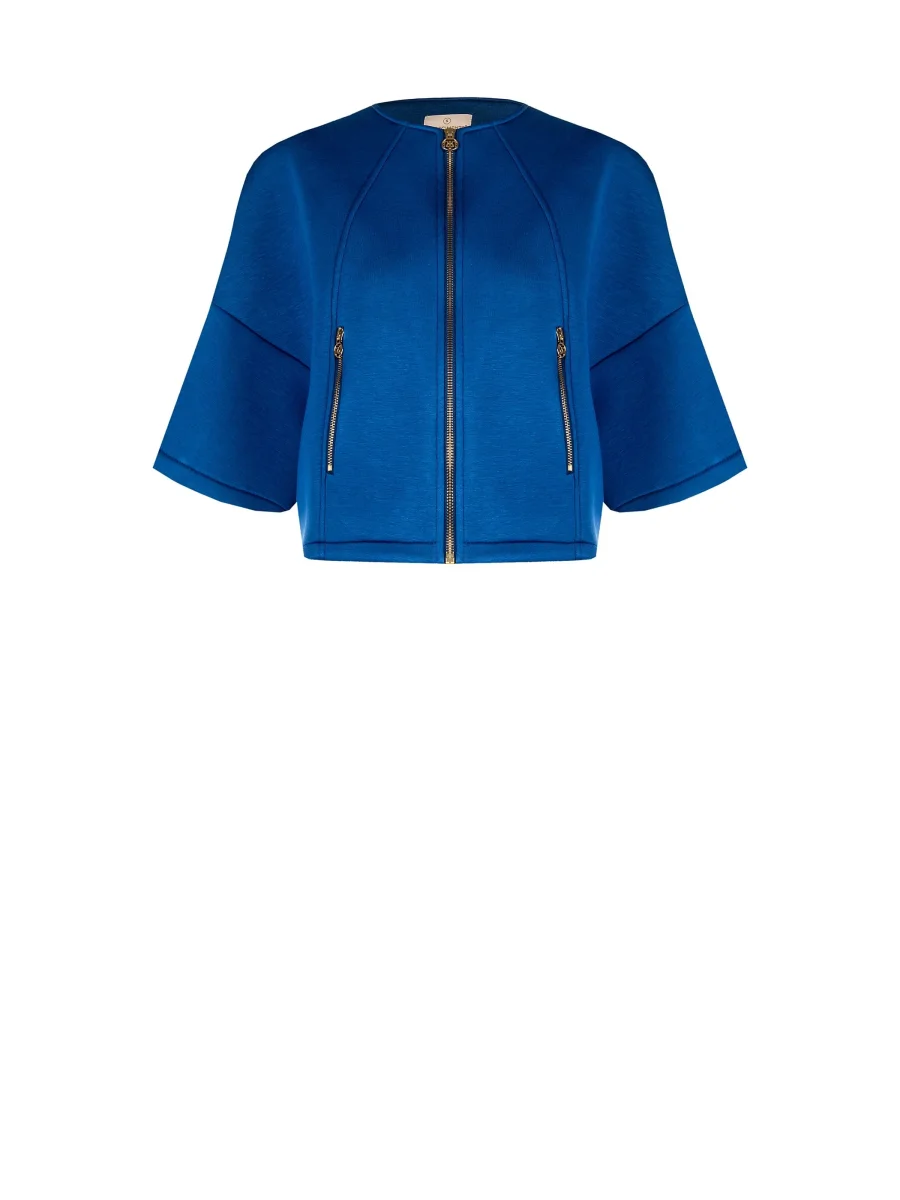 Capospalla cropped blu brillante con zip dorate