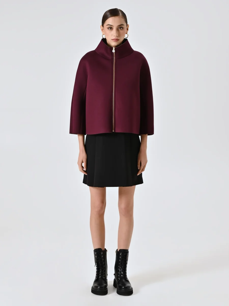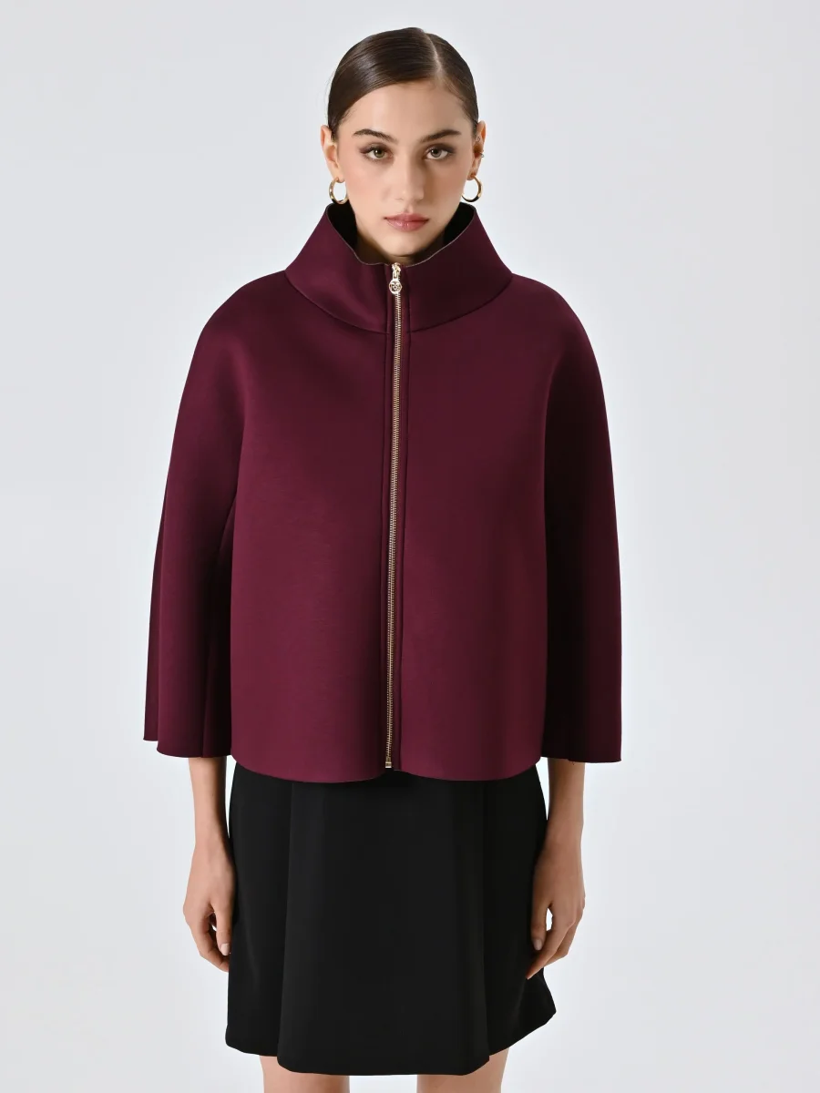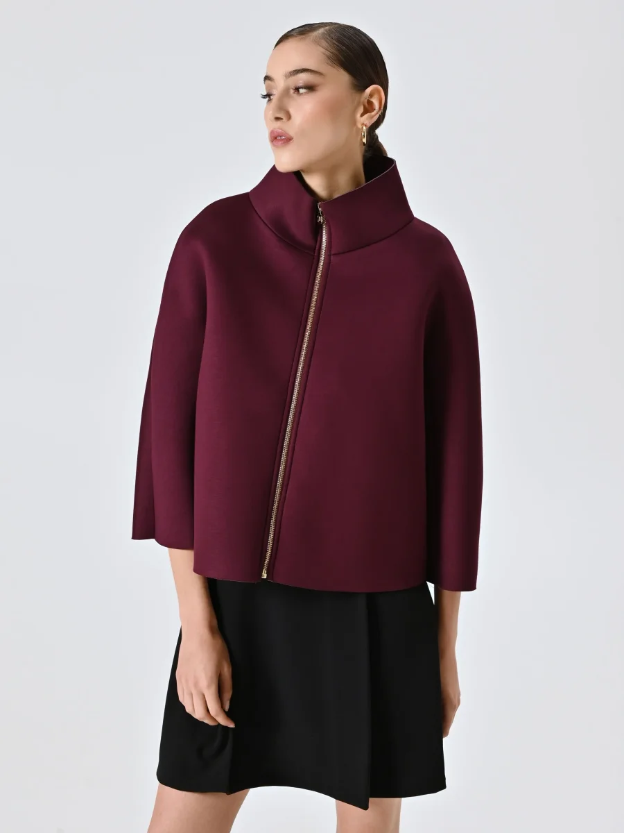 Realizzata in tessuto scuba morbido effetto muta, la Cappa in Tessuto Scuba presenta un taglio svasato che accompagna con eleganza la silhouette, un collo in piedi strutturato e una chiusura frontale con zip arricchita da cursore monogram.