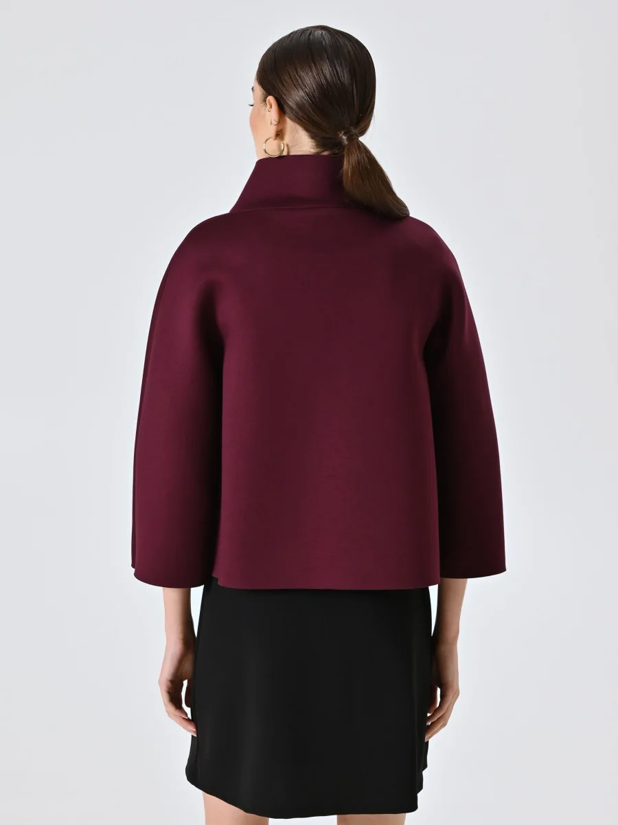 La Cappa in Tessuto Scuba è un capospalla contemporaneo che unisce praticità e stile, perfetto per arricchire i look da giorno con un tocco originale.