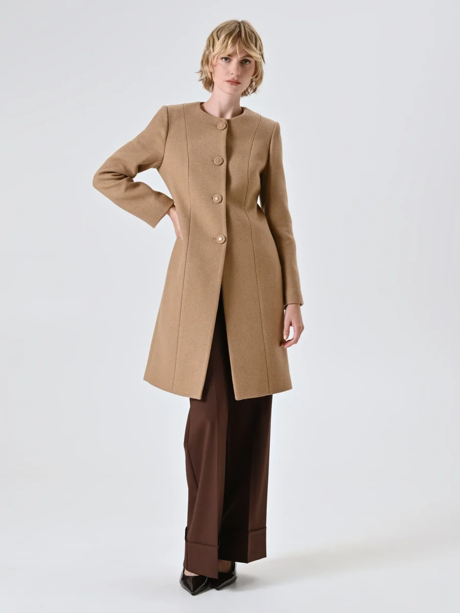 Cappotto Cammello con Sciarpa Removibile