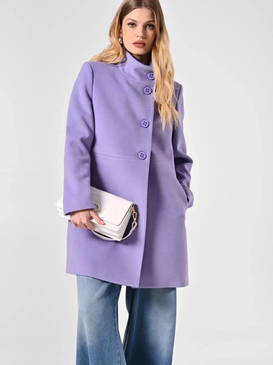Cappotto con Collo in Piedi Lilla