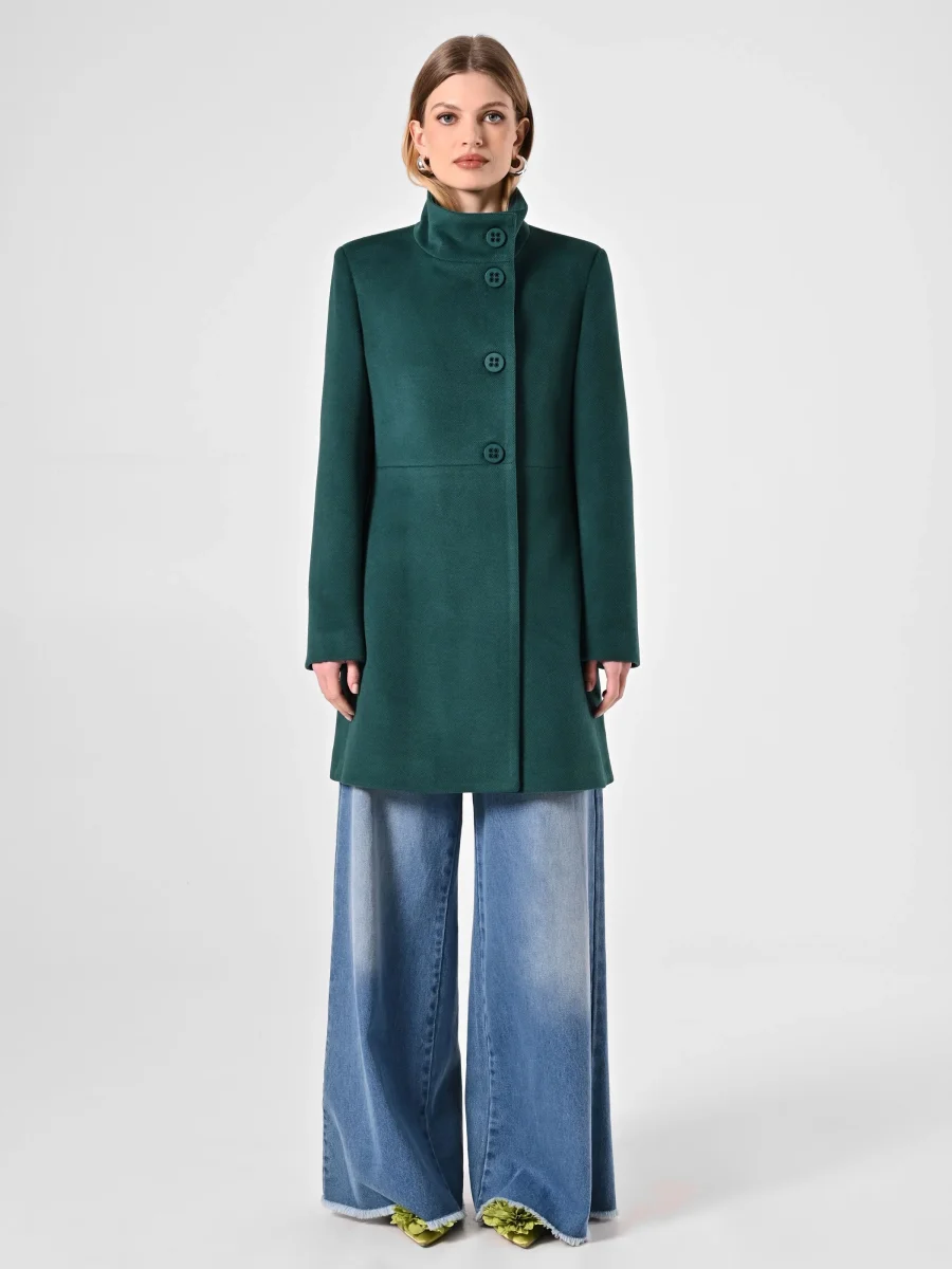 Cappotto con Collo in Piedi Verde Reale
