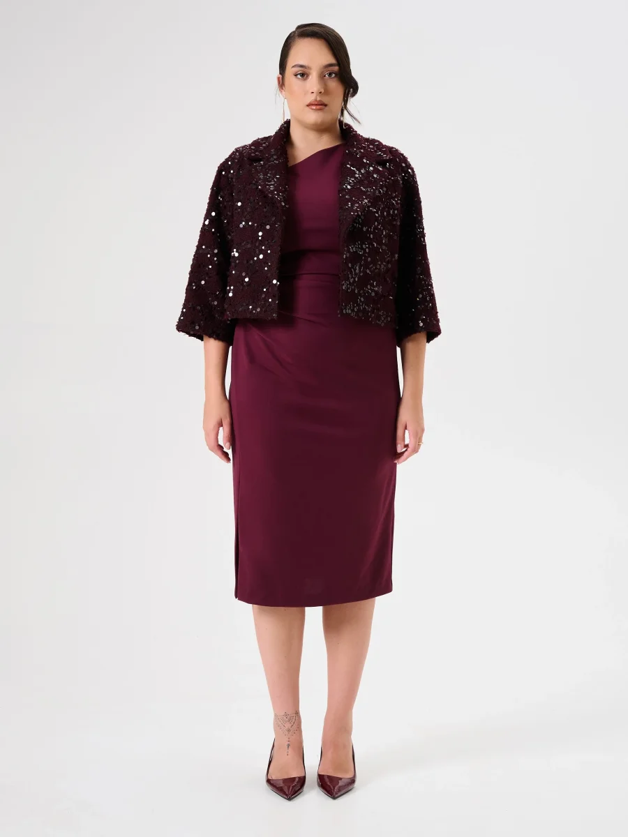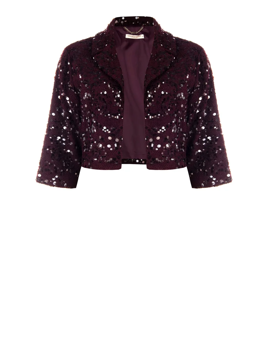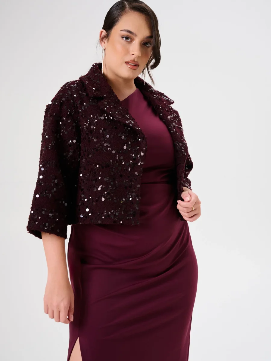 Cappotto Corto Curvy in Panno Bouclé Bordeaux con Paillettes