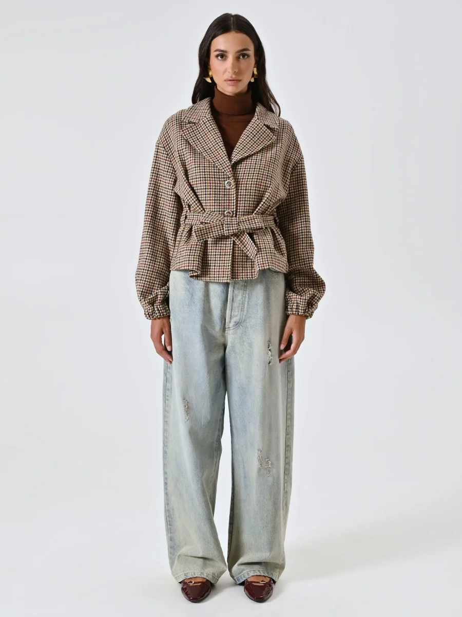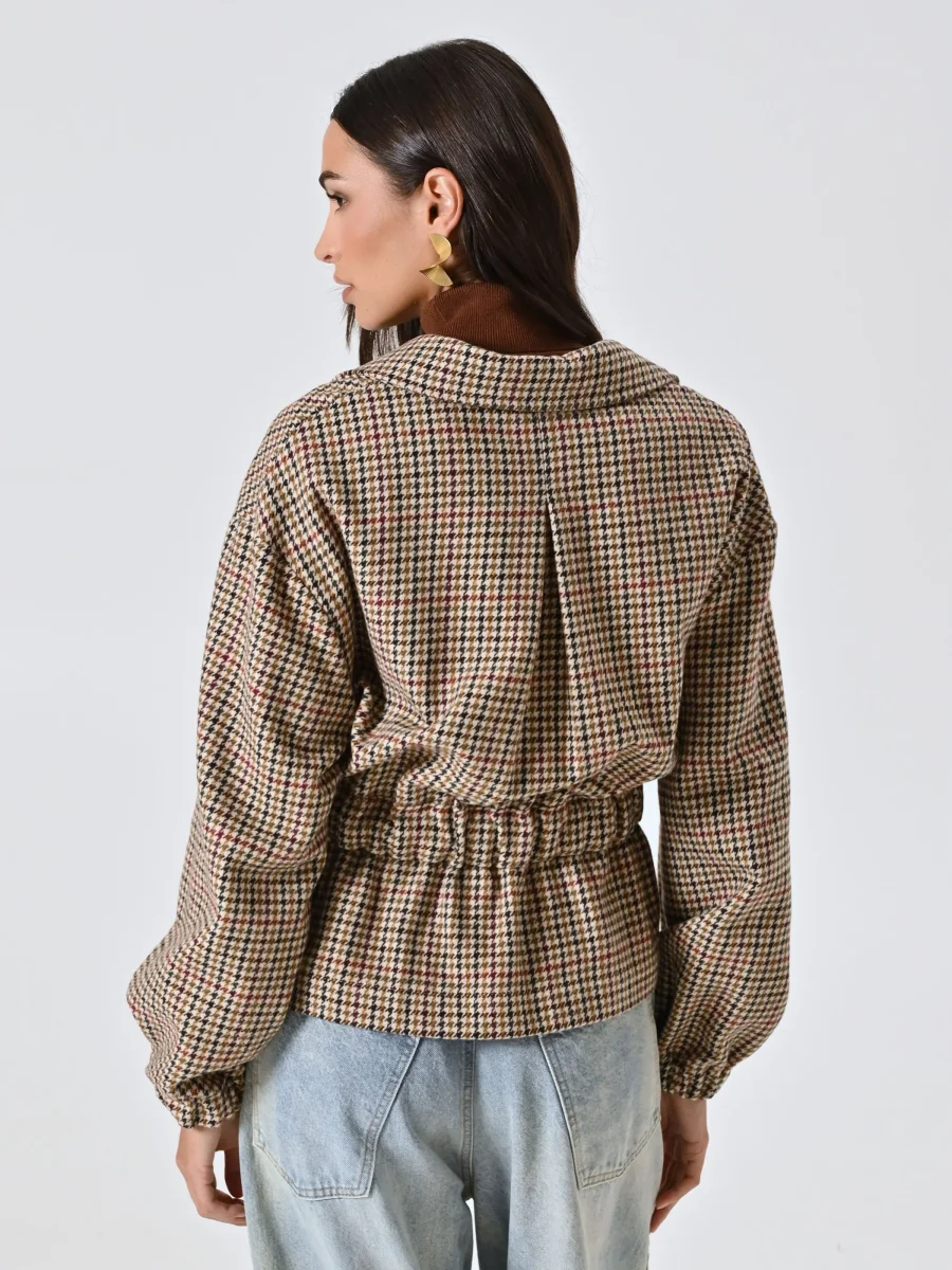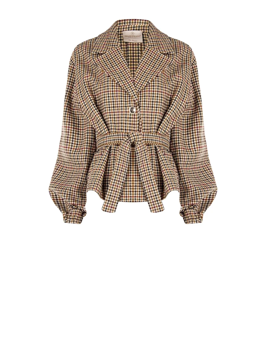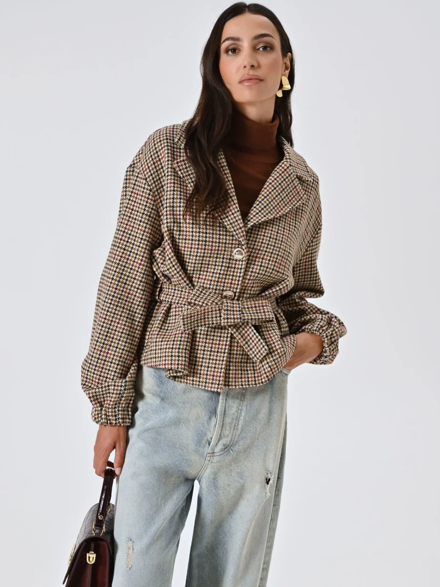 Il Cappotto Corto Pied-de-Poule Multicolor è una proposta raffinata e attuale, perfetta per aggiungere un tocco grafico e femminile ai look da giorno.