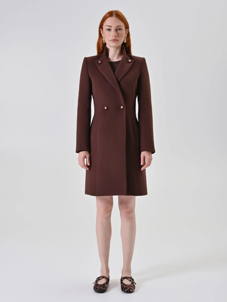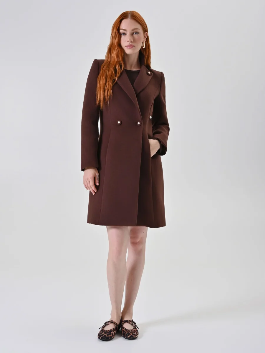 Il cappotto marrone si abbina facilmente a look casual con denim e maglieria o a outfit più formali con abiti e stivali, diventando un alleato versatile per diverse occasioni. Il capo è Made in Italy.