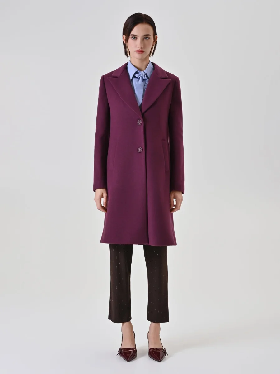 Un colore intenso e una silhouette pulita si incontrano nel cappotto monopetto bordeaux rosso, un capo essenziale pensato per accompagnare con stile la stagione fredda e dare un tocco di personalità ai look di ogni giorno. Il design è caratterizzato da una linea dritta e strutturata che sfiora il ginocchio, valorizzando la figura con un’eleganza discreta. I rever classici e la chiusura frontale con bottoni a vista in tinta definiscono uno stile contemporaneo e funzionale, mentre le tasche a filetto laterali aggiungono un dettaglio pratico. La sua costruzione assicura una vestibilità confortevole, ideale per essere indossato sopra a giacche e maglioni spessi. Pensato per essere un alleato versatile del guardaroba quotidiano, questo cappotto si abbina facilmente ai completi per l’ufficio, ai look con denim e maglieria per il tempo libero, oppure a bluse e pantaloni per le occasioni più informali. La sua tonalità bordeaux lo rende perfetto per creare abbinamenti cromatici ricercati con i neutri e i colori della terra.