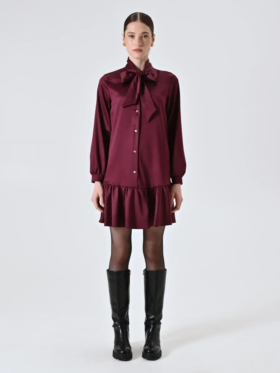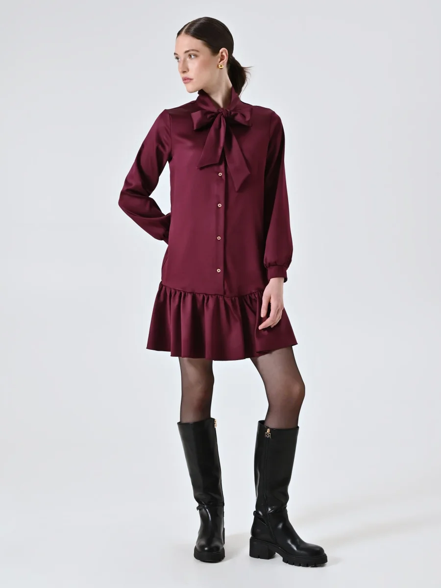 Lo Chemisier in Raso con Fiocco è una proposta raffinata e femminile, ideale per aggiungere un tocco sofisticato ai look da giorno.