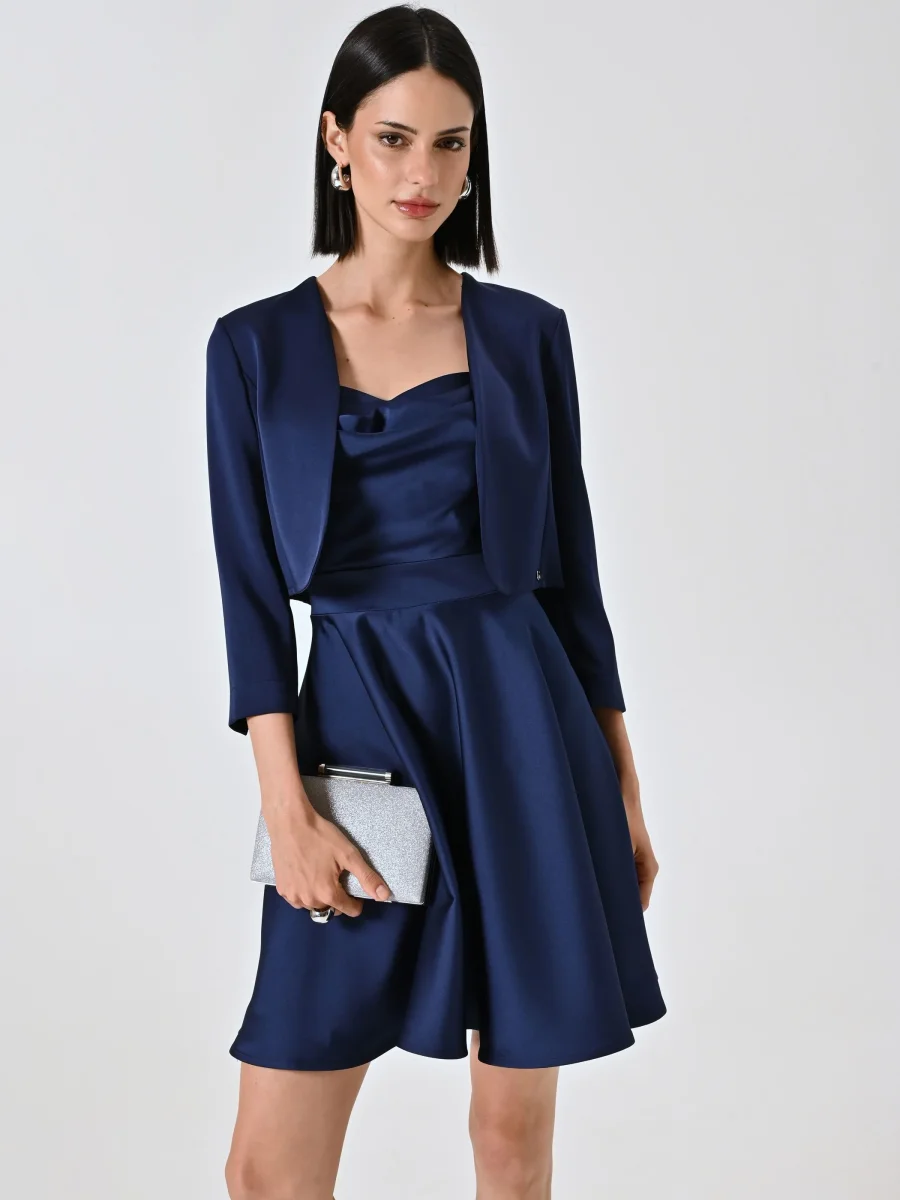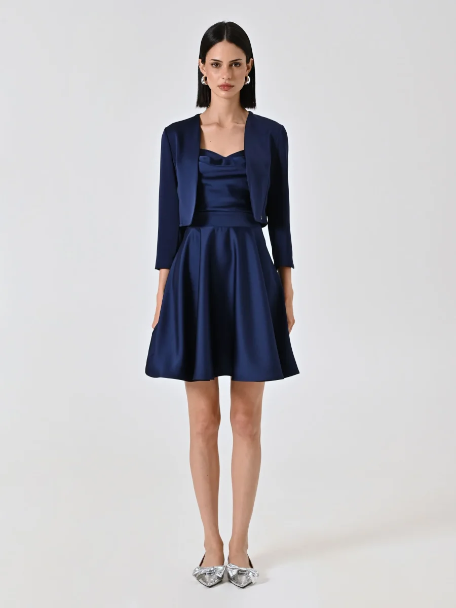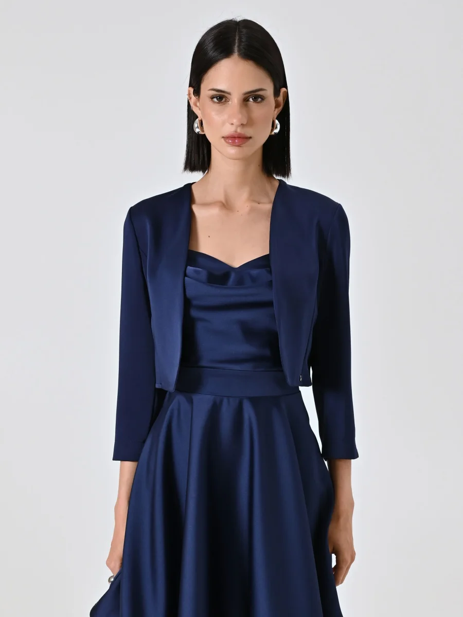 Il Coprispalle in Raso è un capo essenziale per completare con eleganza i look da cerimonia, aggiungendo un tocco raffinato senza rinunciare alla leggerezza.