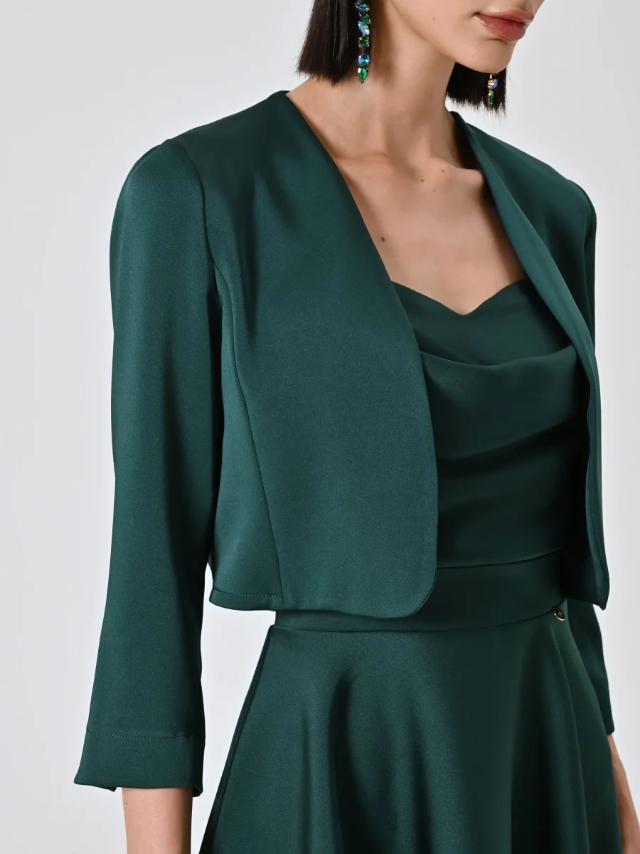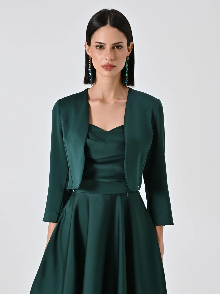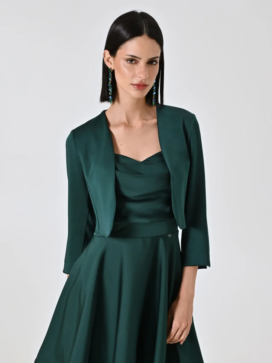 Coprispalla atelier smeraldo verde in raso con maniche strutturate