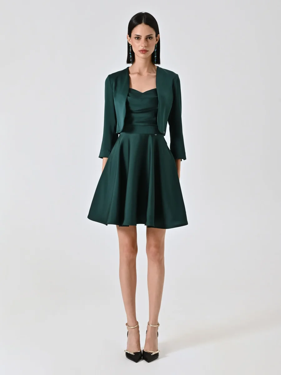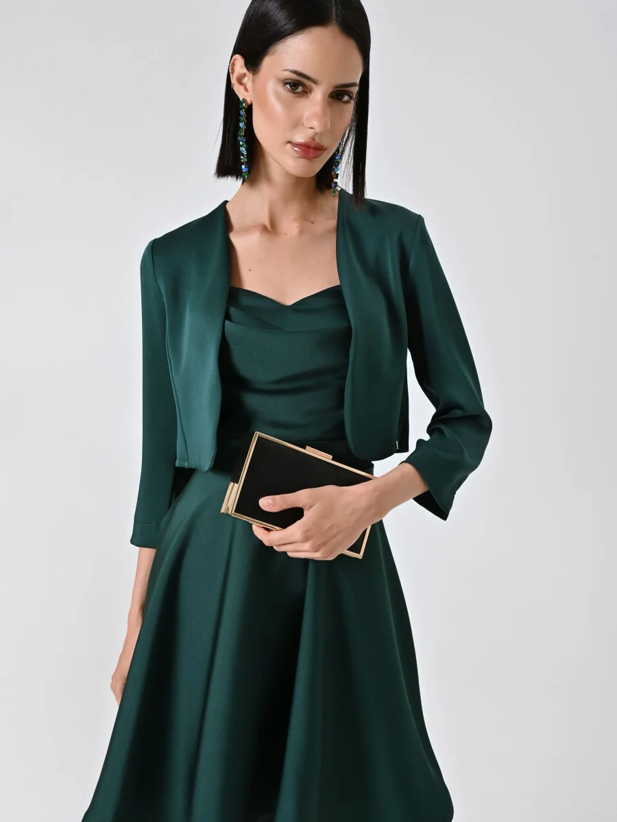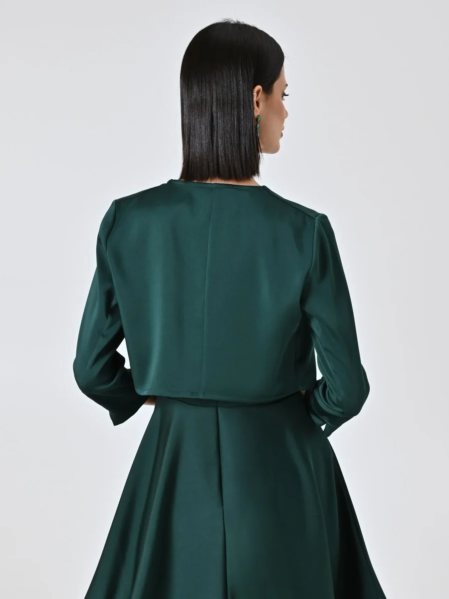 Coprispalla atelier smeraldo verde in raso con maniche strutturate