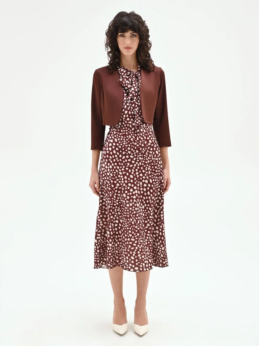 Eleganza avvolgente e una nuance intensa: il coprispalla è il complemento perfetto per gli abiti da cerimonia e da sera. Realizzato in raso liscio dalla finitura luminosa, questo modello bolero è disegnato con una linea corta che si ferma strategicamente sopra il punto vita, valorizzando la silhouette senza appesantirla. Le spalle definite conferiscono una postura […]
