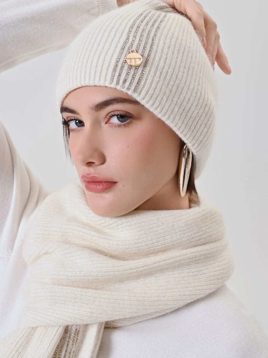 La Cuffia con Inserto Lurex è l’accessorio perfetto per completare i tuoi look invernali con un tocco di luce discreta e raffinata.