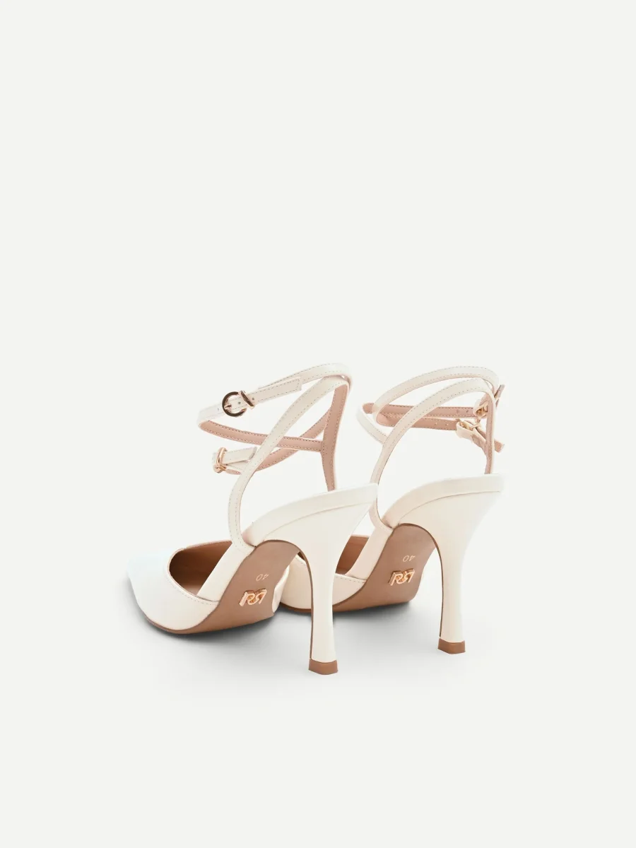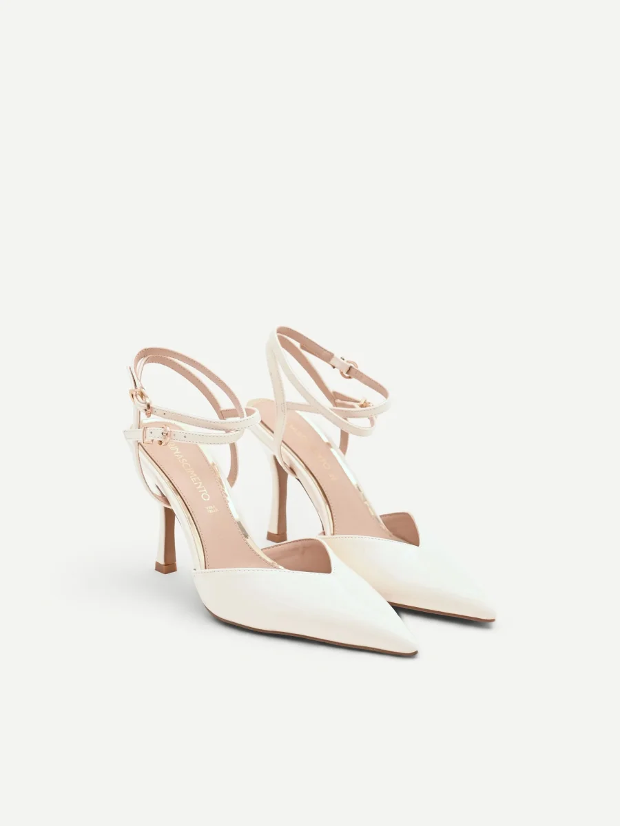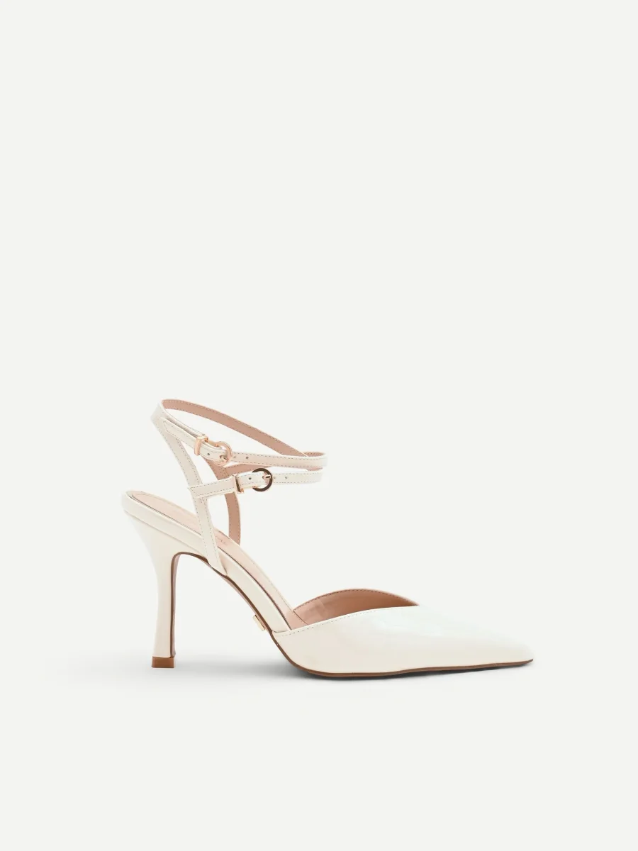 Linee affusolate e dettagli luminosi disegnano la décolleté beige, un accessorio pensato per slanciare la silhouette con estrema raffinatezza. Realizzata in un materiale lucido effetto vernice, questa calzatura è definita da una punta sfilata e un tacco a spillo che valorizza la figura in ogni occasione speciale. Il particolare design lascia scoperto il lato interno del piede, creando un sensuale gioco di pieni e vuoti che cattura lo sguardo. A completare il modello è il doppio laccetto sottile che avvolge delicatamente la caviglia, arricchito da piccole fibbie metalliche regolabili con finitura dorata. Queste décolleté sono il complemento ideale per abiti da cerimonia lunghi e fluttuanti o per look da sera più audaci, perfette per illuminare i tuoi eventi più importanti. Indossale per completare i tuoi outfit più ricercati, aggiungendo un dettaglio di stile femminile che non passa inosservato.