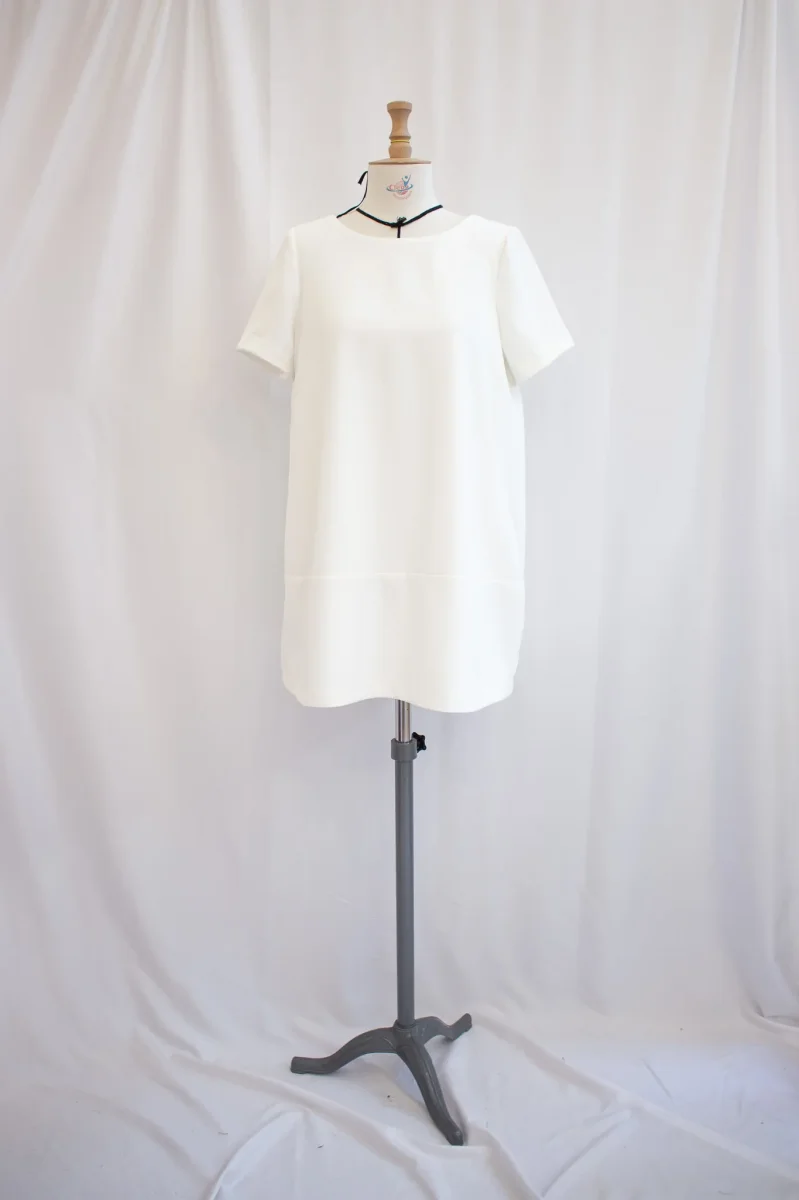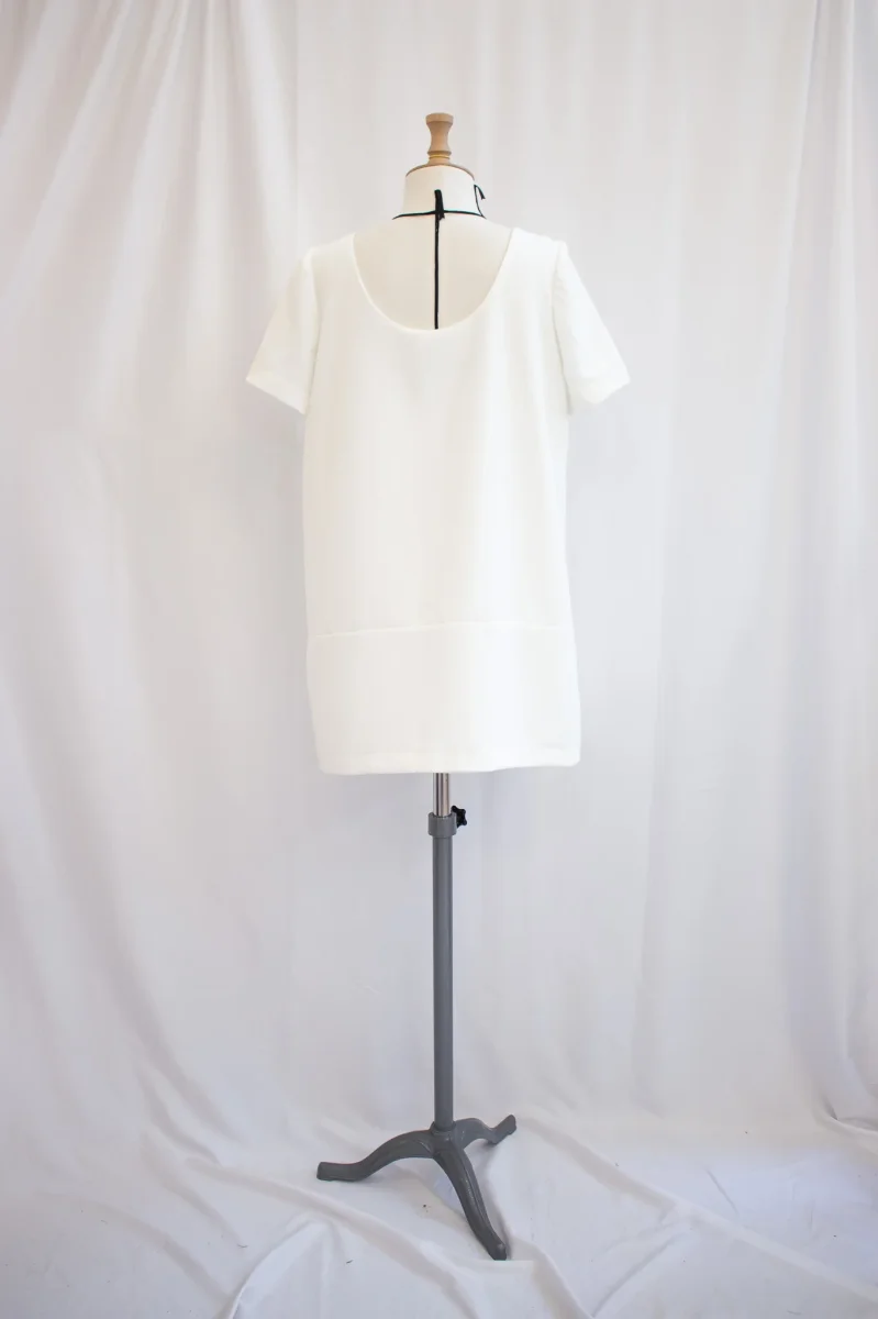 Fabriqué en France ⬇ message alerte ⬇ Attention ! La vente privée se déroule exclusivement en ligne. Aucun essayage n’est possible au showroom. Description Détails : Robe courte décolleté devant ou dos au choix Matières : – Polyester Couleurs : – Blanc Conseils D’entretien Livraison et Retours
