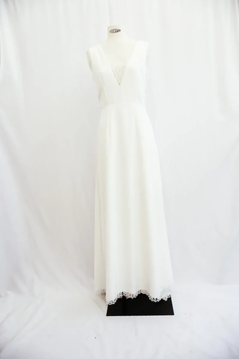 Fabriqué en France ⬇ message alerte ⬇ Attention ! La vente privée se déroule exclusivement en ligne. Aucun essayage n’est possible au showroom. Description Détails : Dentelle déchirée côté zip Matières : – Polyester et dentelle Couleurs : – Blanc Conseils D’entretien Livraison et Retours