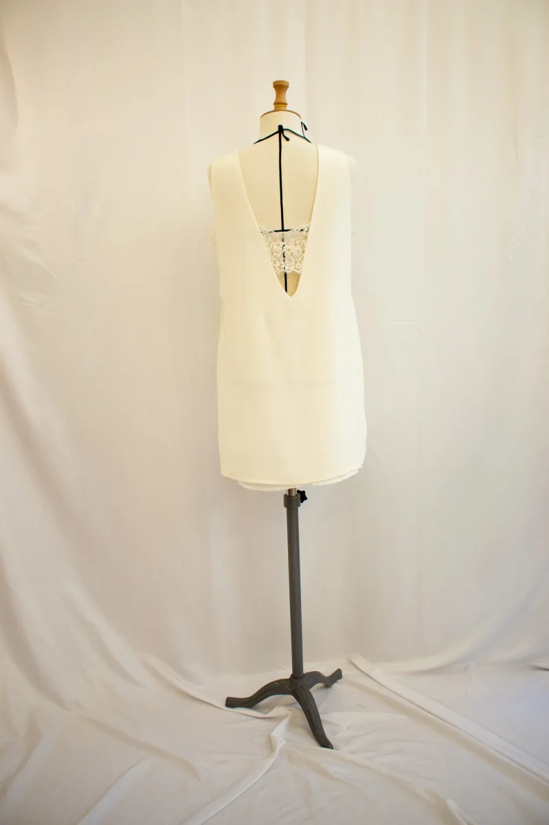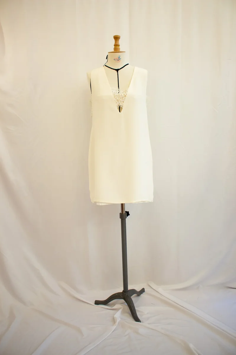 Fabriqué en France ⬇ message alerte ⬇ Attention ! La vente privée se déroule exclusivement en ligne. Aucun essayage n’est possible au showroom. Description Défaut : Petite tâche sur l’avant Matières : – Soie Couleurs : – Blanc Conseils D’entretien Livraison et Retours