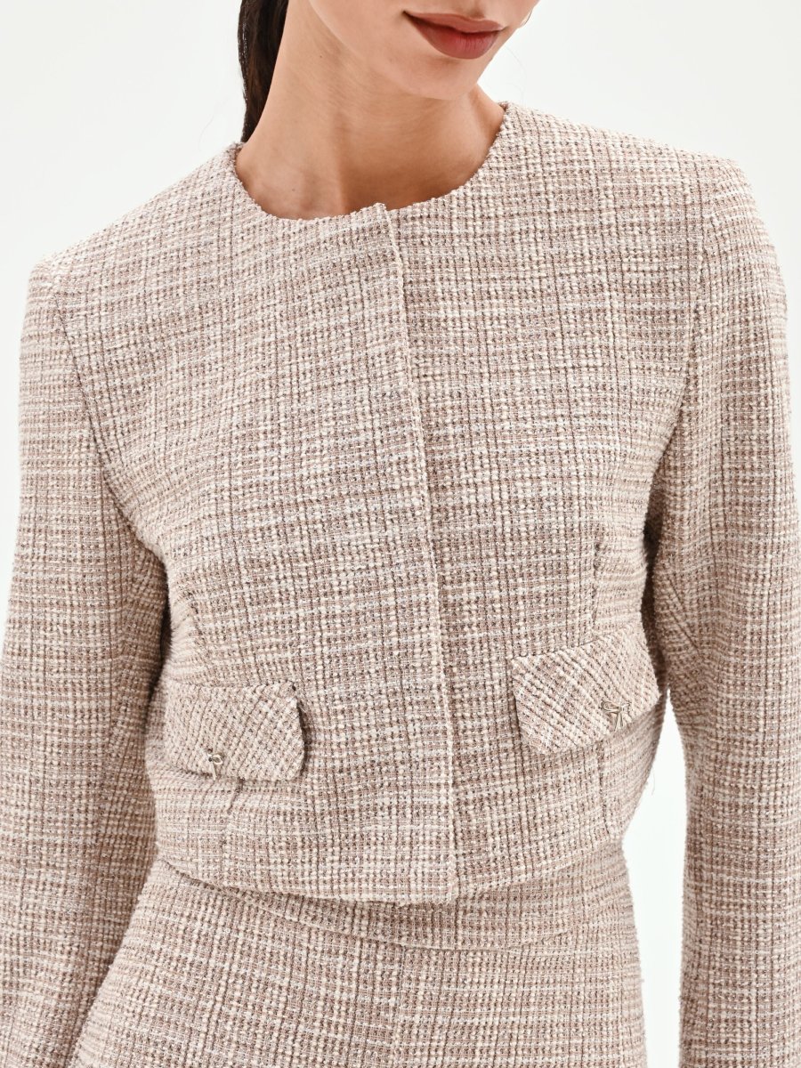 Giacca beige chiaro in tweed con tasche applicate