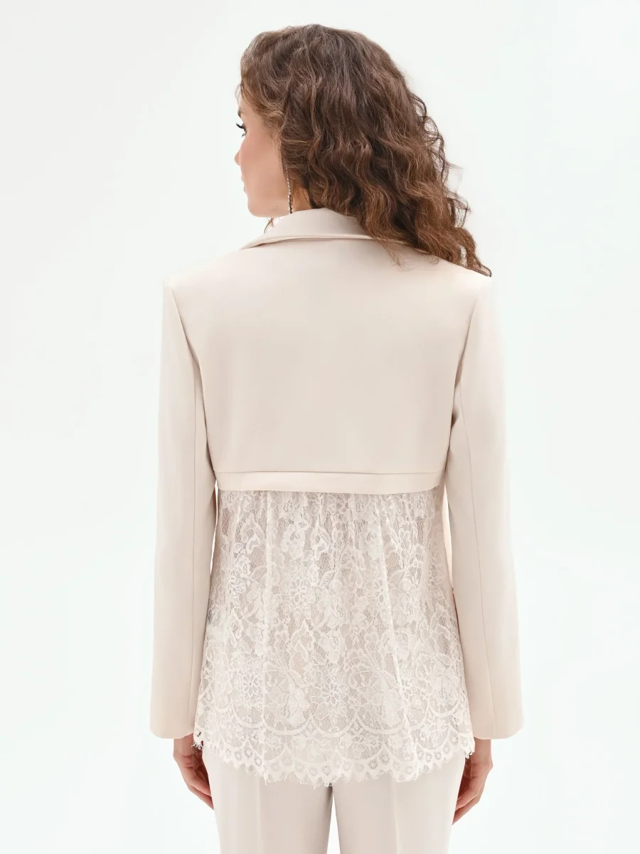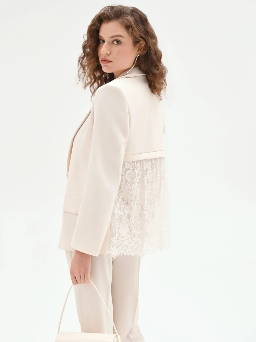 Giacca Bianca in Tessuto Fluido mano Crepe & Pizzo