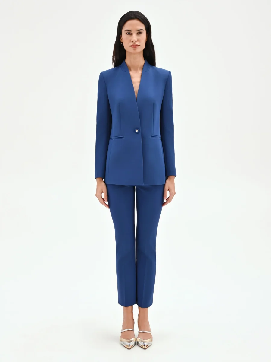 Giacca blazer blu brillante senza rever