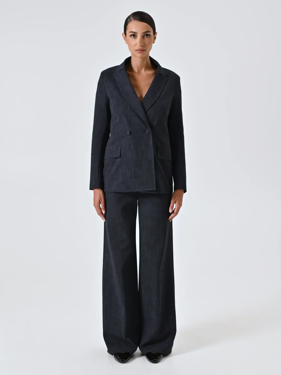 La Giacca in Punto Milano Fiammato è un capo d’ispirazione formale che aggiunge struttura e femminilità al guardaroba da ufficio. Realizzata in jersey punto milano fiammato, la Giacca in Punto Milano Fiammato presenta un design doppiopetto con revers a lancia, impunture a vista e patte effetto tasca. La giacca è sfoderata, chiusa da bottoni sur-ton […]