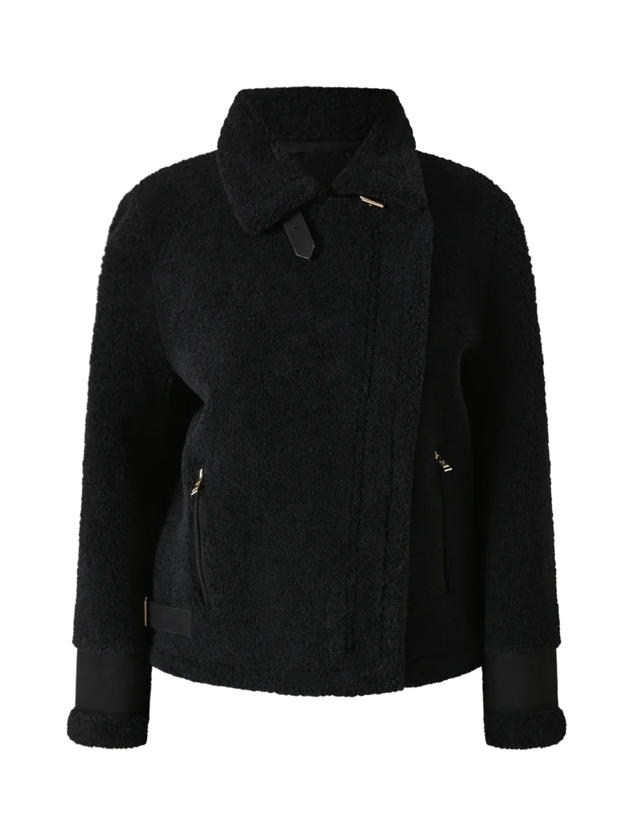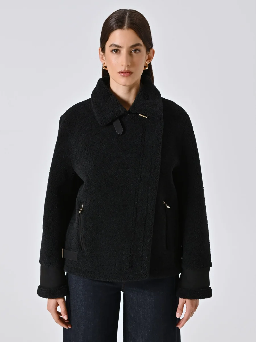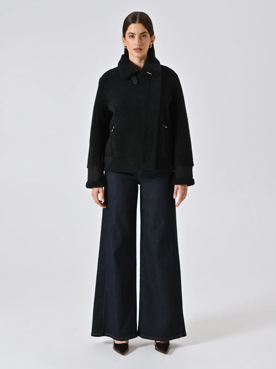La Giacca Bombardier effetto Sherling è il capo perfetto per aggiungere carattere ai tuoi look invernali con un tocco deciso e femminile.