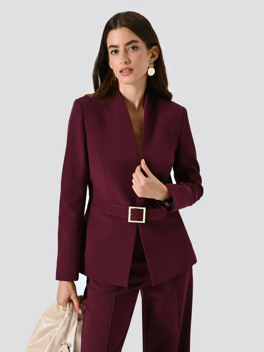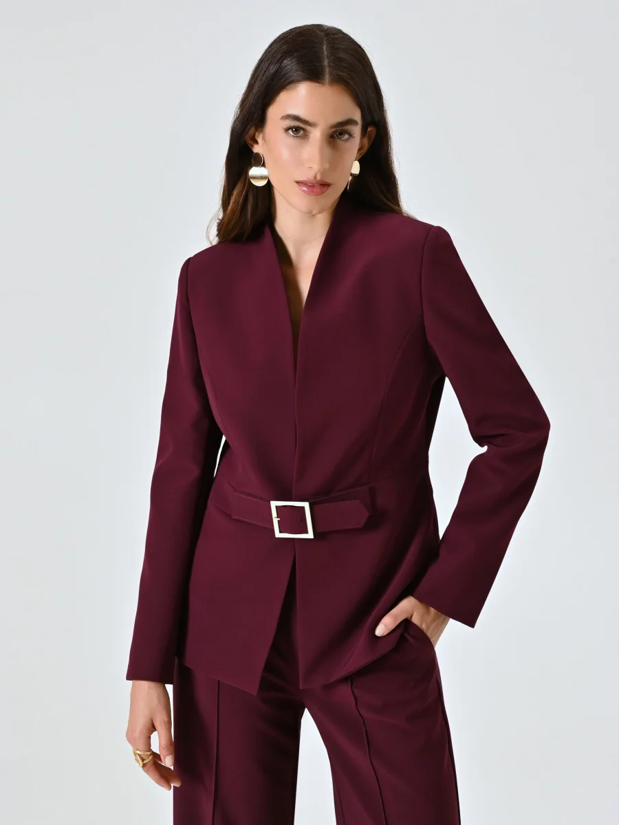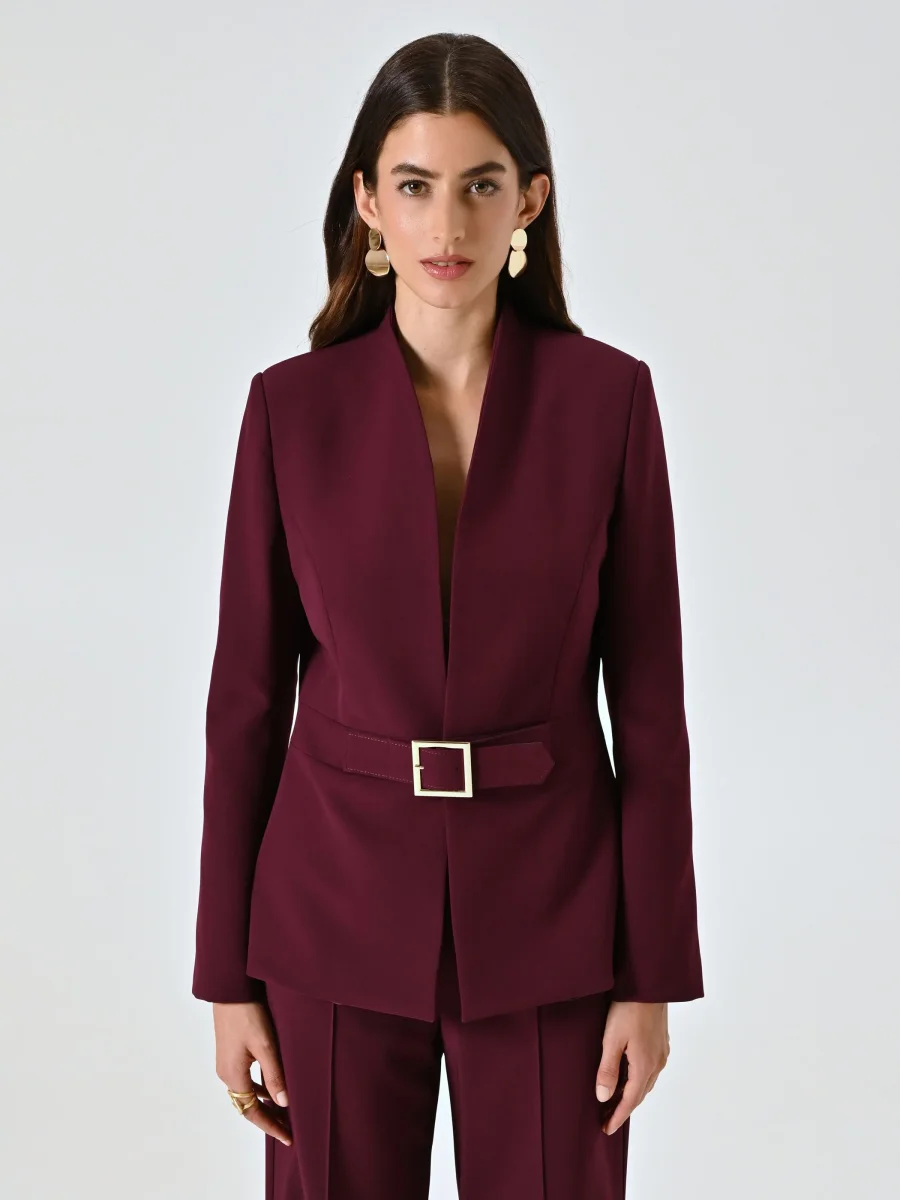 Giacca Bordeaux con Fibbia Geometrica in Tessuto Tecnico