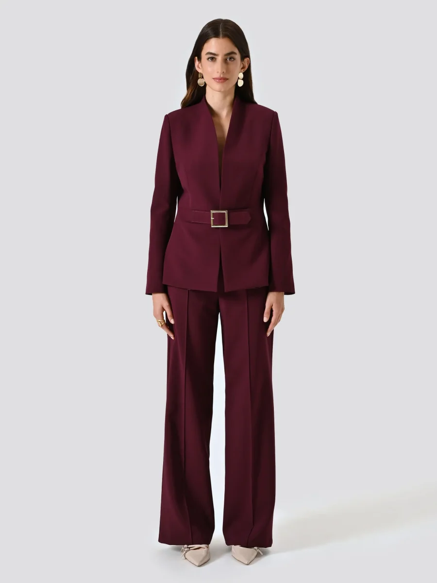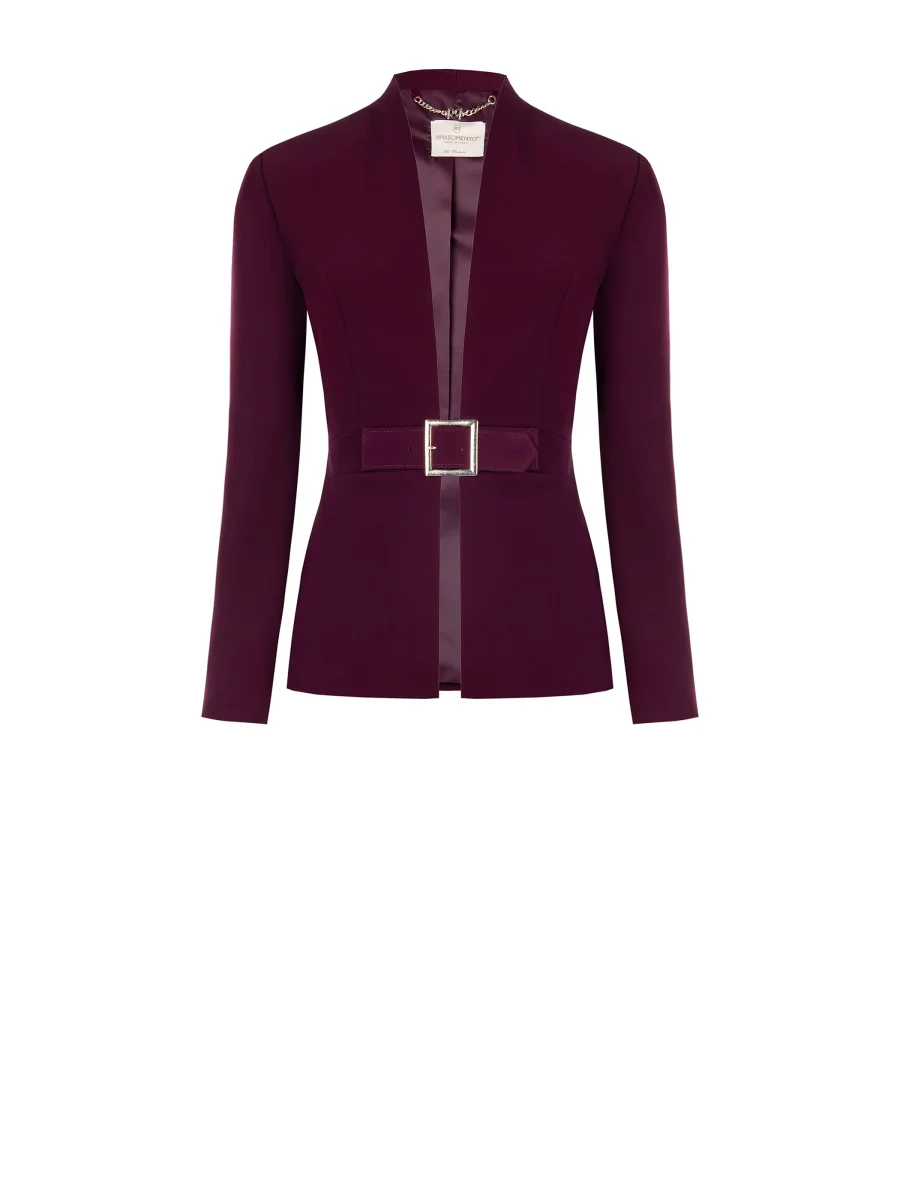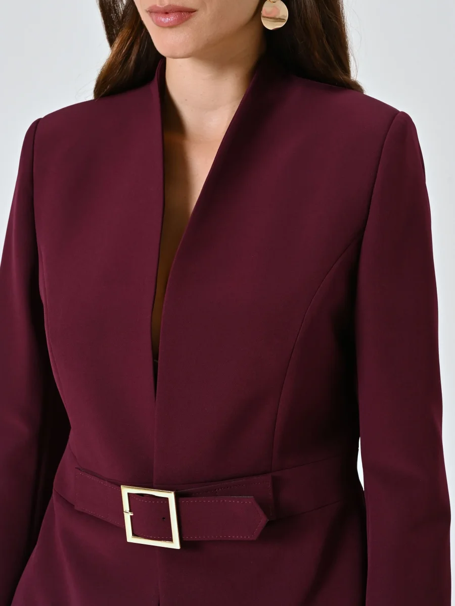 Giacca Bordeaux con Fibbia Geometrica in Tessuto Tecnico