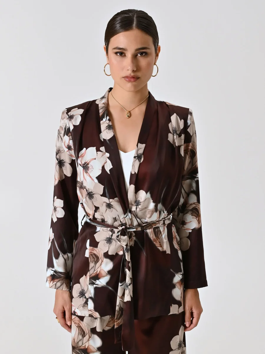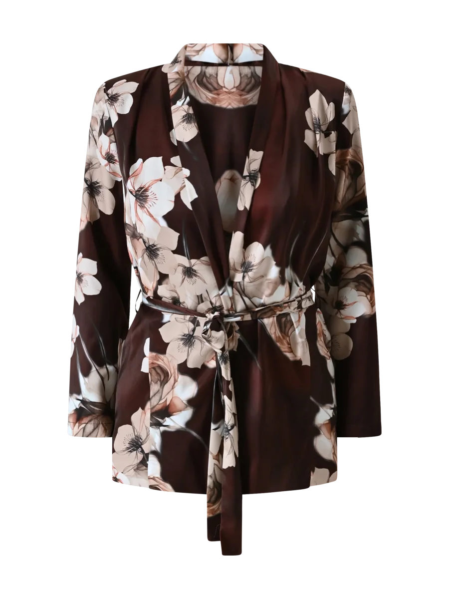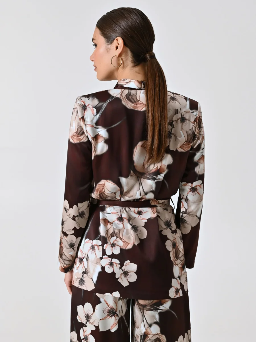 Giacca Camicia stampa Floreale, un capo raffinato e luminoso che unisce la leggerezza di una camicia all’eleganza di una giacca dalla linea fluida.